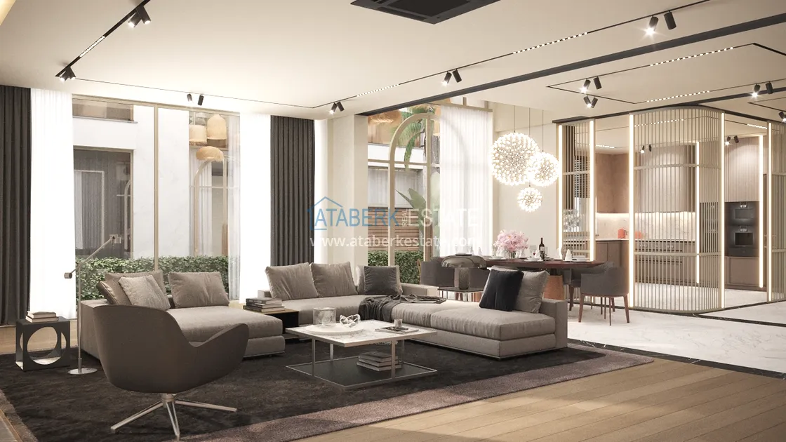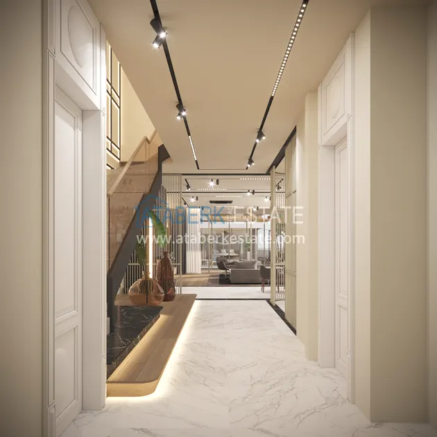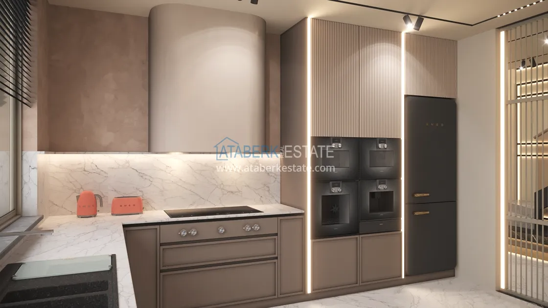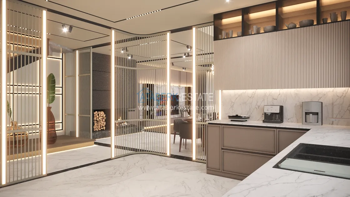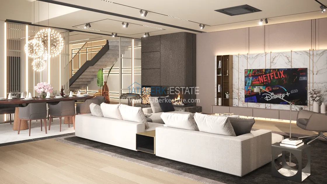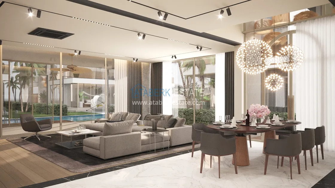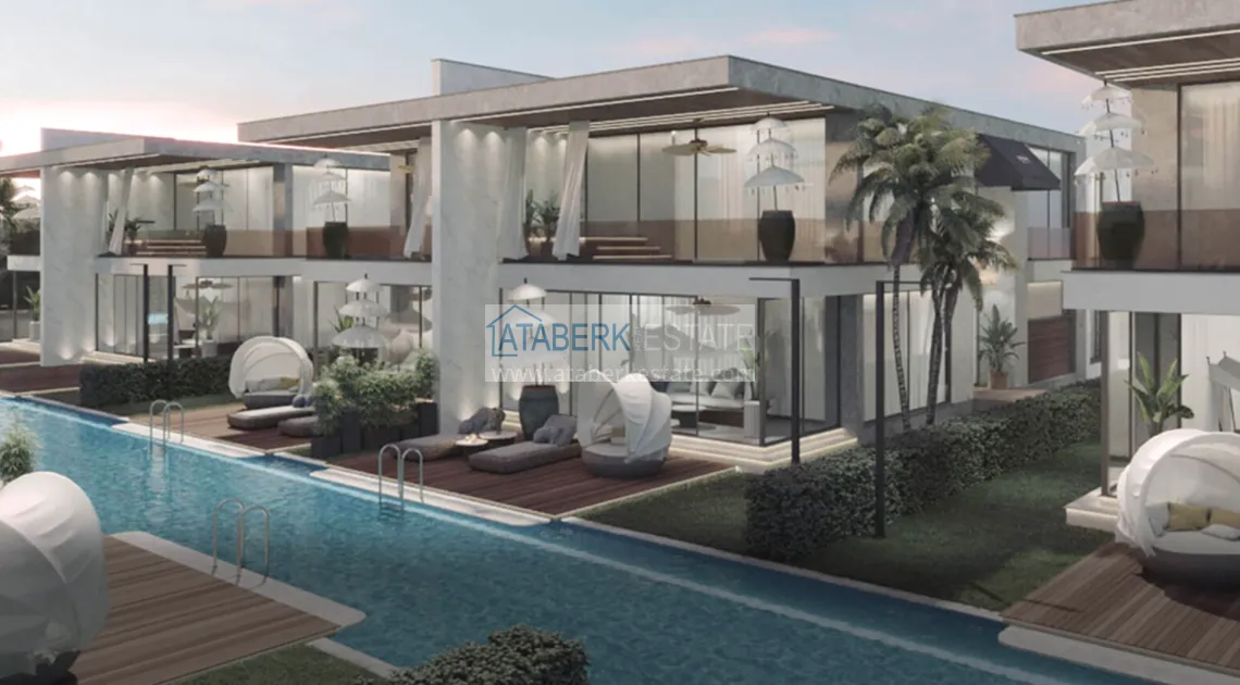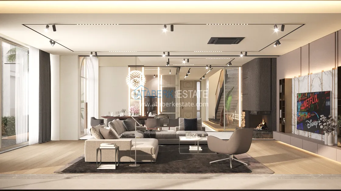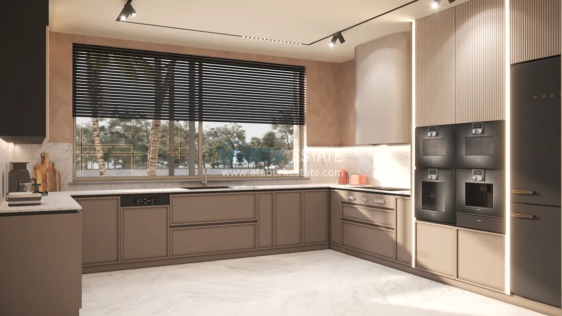 An elegant complex of modern villas will be implemented on a plot of 5177 m2, consisting of 6 two-storey adjacent villas - for two owners. Each layout is 4+1 and has an area of 400 m2. The complex will have an automatic lighting system, its own internal infrastructure and round-the-clock security. The cost of each villa includes: full finishing, high-quality plumbing, equipped bathrooms and equipped kitchens - a set and a package of household appliances.