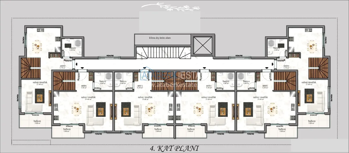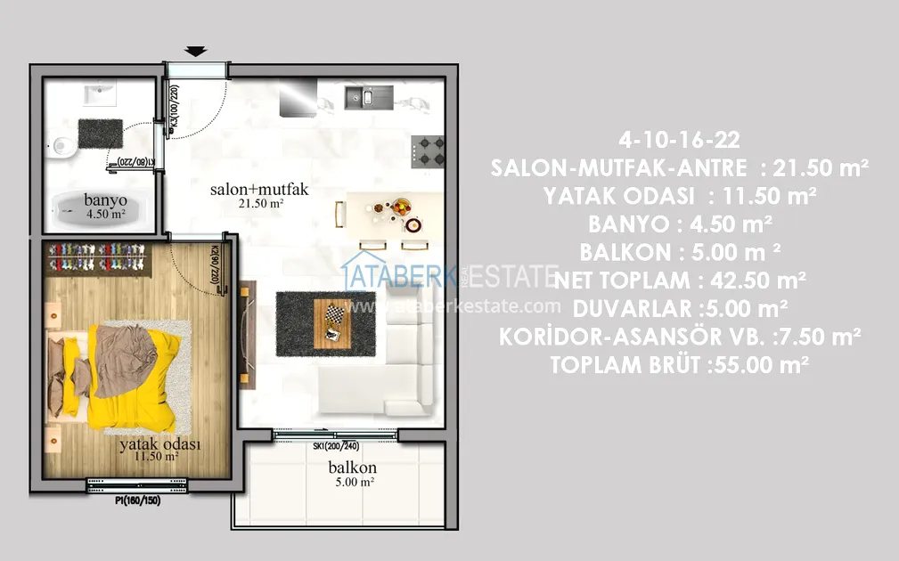 The project will be implemented on a plot of 1292 m2, include one 4-storey block - 27 apartments, and a closed area with a variety of infrastructure. Offered for sale are 1+1 apartments and 2+1 duplexes. The price includes: full finishing, built-in kitchen furniture, equipped bathrooms, video intercom.