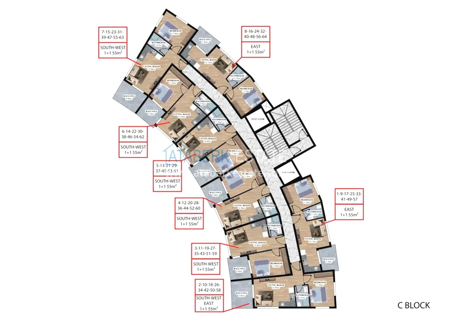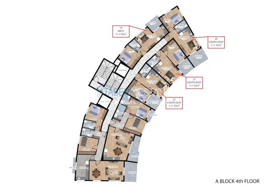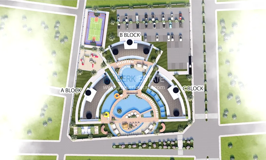 A multifunctional residential complex will be implemented on an area of 8775 m2, including three 9-storey blocks and a private protected area. Offered for sale layouts: 1+1, 2+1, 3+1, 4+1 area from 55 to 220 m2. The apartments will be delivered fully finished with premium quality materials and classic design. A kitchen set with niches for household appliances will be installed, bathrooms will be fully equipped, spotlights will be installed and outlets for air conditioners will be provided.