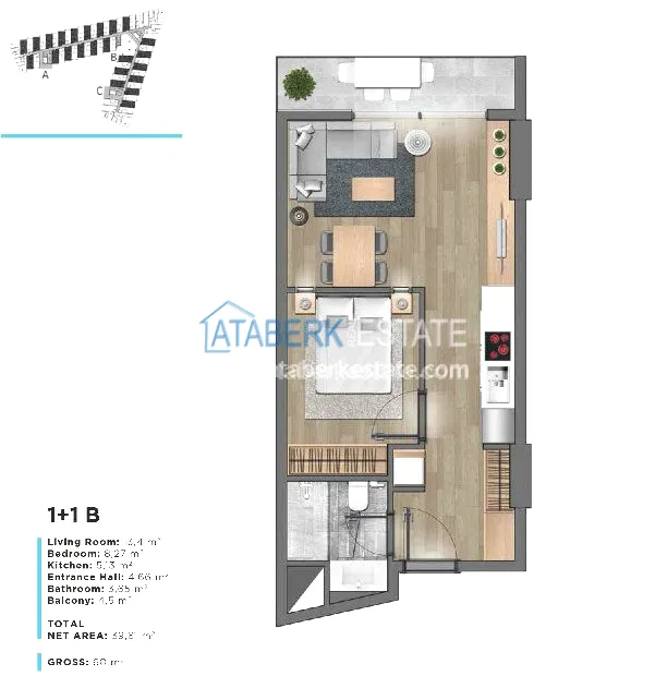 The penthouse is located in a separate block with an isolated entrance, consists of an entrance hall, separate kitchen, living room, two bedrooms, two bathrooms, two balconies.The balcony has a panoramic view of the Mediterranean Sea, the mountains and the pine forest.