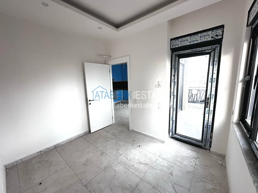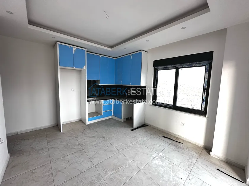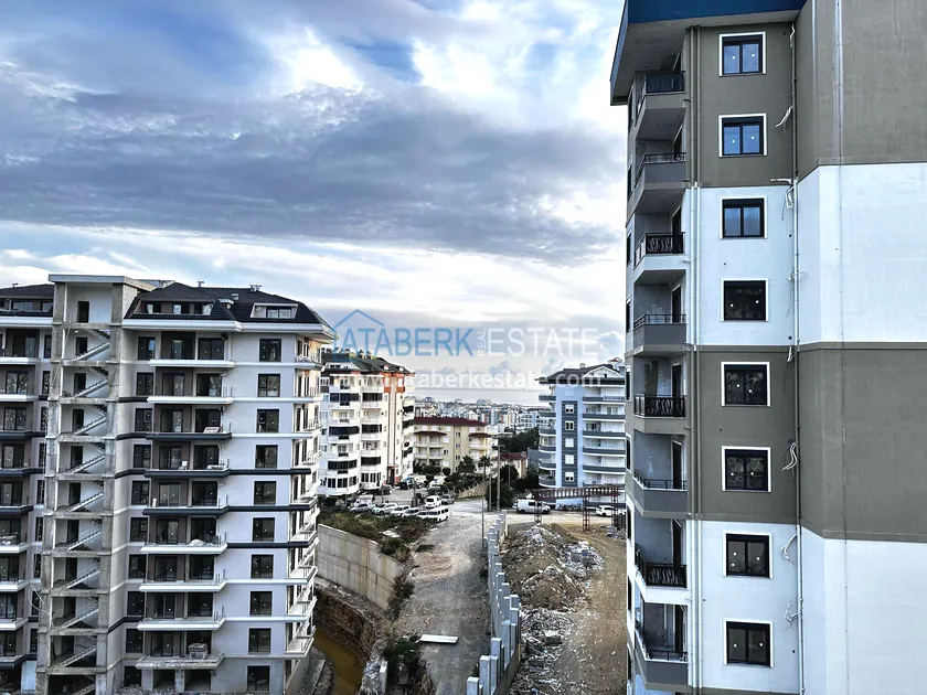 In a picturesque area of Alanya, a new 1+1 apartment with a fine finish is available for sale in a premium segment complex. The apartment has an area of 45 m2, the location is the fifth floor. The layout includes: a living room with an American-style kitchen, a bedroom, a bathroom and a balcony. The balcony offers partial sea views, and the south-east orientation fills the apartment with natural light for most of the day.