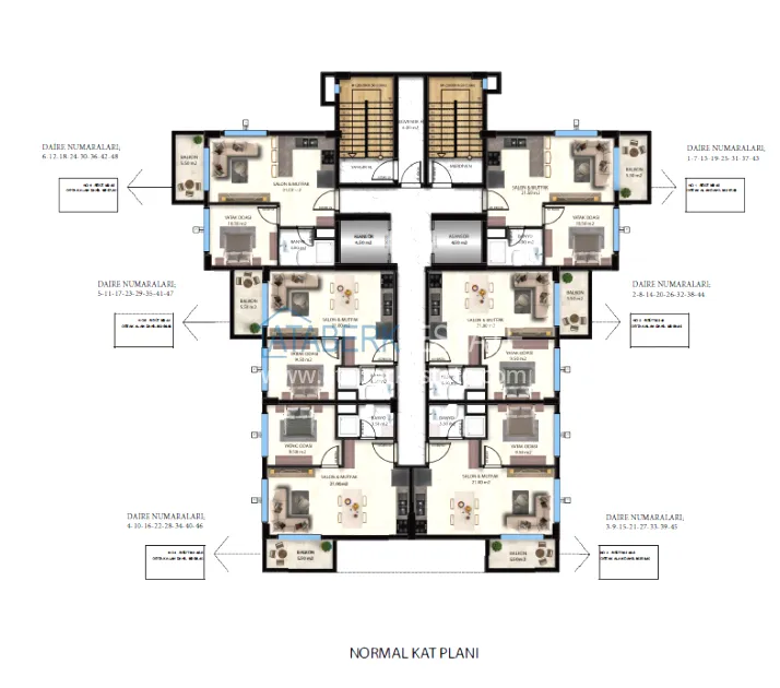 The complex includes two residential blocks and a well-maintained gated area with rich infrastructure, where everything is designed for convenience and relaxation. The location, 1.4 km from the famous Incekum Beach, allows you to combine tranquility with proximity to the sea and the district's infrastructure. The location and atmosphere make this project an attractive choice for living and investing.