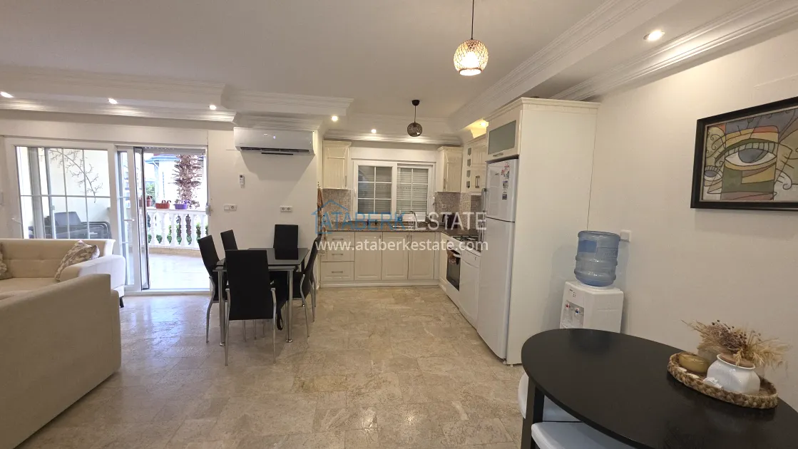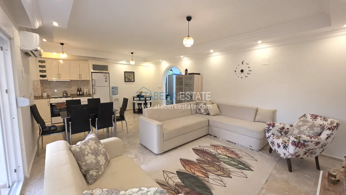 The 2+1 apartment is located on the ground floor and has direct access to a private garden with close access to the pool, making it feel like living in a townhouse. The total area is about 105 m². The apartments are sold furnished and ready to use without additional investments.