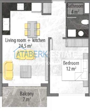 property.A two-room apartment with an area of 47.5 m², located on the 5th floor. The layout includes a living room with an open-plan kitchen, a bedroom and a bathroom. The apartment overlooks the internal infrastructure of the complex. The apartments are offered unfurnished, but fully finished. Specially designed modular kitchen furniture has been installed, the bathroom is fully equipped, each room has air conditioners, and a instantaneous water heater has been installed. The apartment is new, without a history of residence.