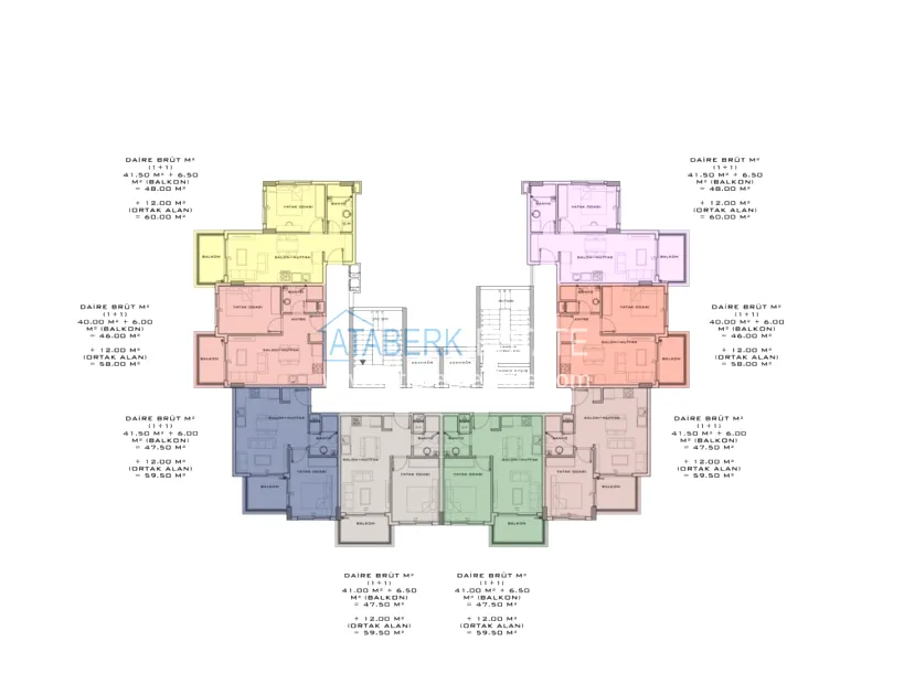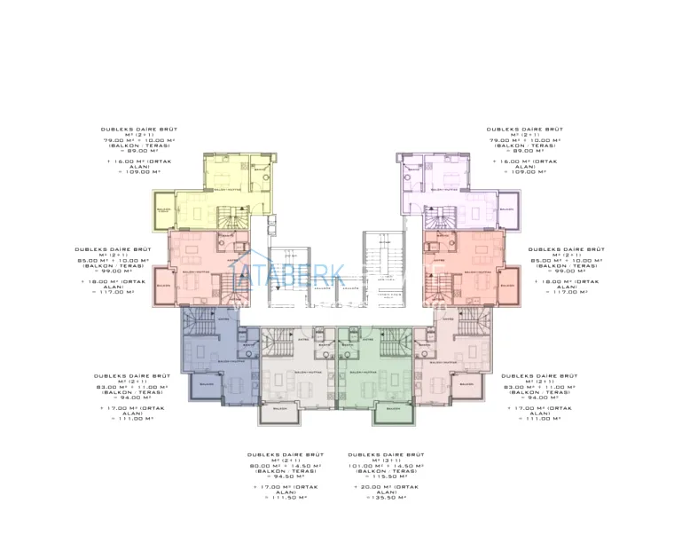 Apartment types: two-room layouts 1+1 with an area of 46 m2 and two-level penthouses with a layout of 2+1 with an area of 94 m2.