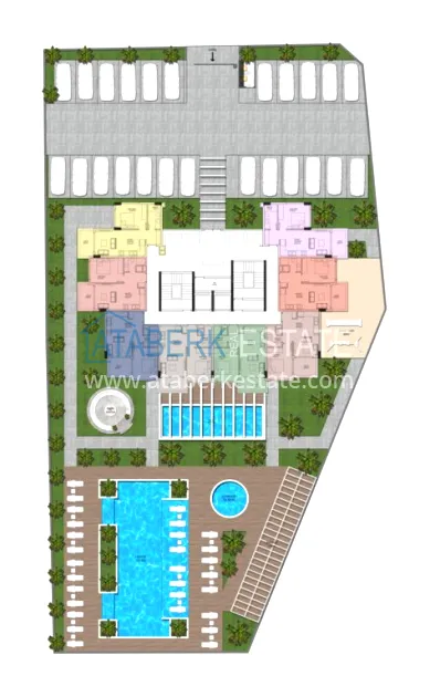 This complex has a convenient location — in a quiet and peaceful place, 1500 meters from sandy beaches and within walking distance from city infrastructure. It is implemented on an area of 2,400 m2 and includes one 7-storey block of 48 apartments, a landscaped private area and developed infrastructure. The house has internal infrastructure on the ground floor.