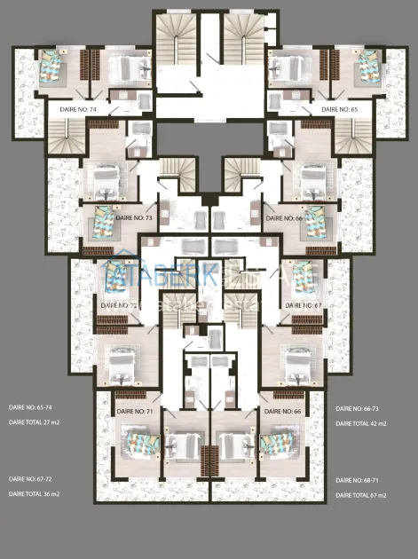The total area is 2,500 m2. The complex includes one 9-storey block and a closed protected area, as well as internal infrastructure that will provide you with increased comfort and safety. For sale are 1+1 apartments and 2+1 penthouses, ranging in size from 51 to 115 m2. The price includes full finishing, built-in kitchen furniture, fully equipped bathrooms and all necessary plumbing.