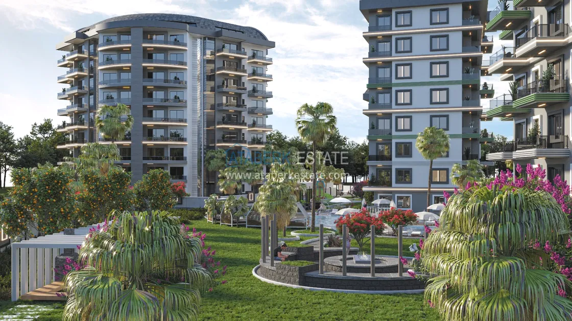 The residence is being built in one of the most beautiful areas of Alanya - Avsallar, with a wonderful climate, at a distance of 1.7 km from the Mediterranean coast. The project is being implemented on a plot of 9,575 m2, consists of 4 blocks, a private area with a well-thought-out infrastructure. The commissioning of the complex is scheduled for July 2023.