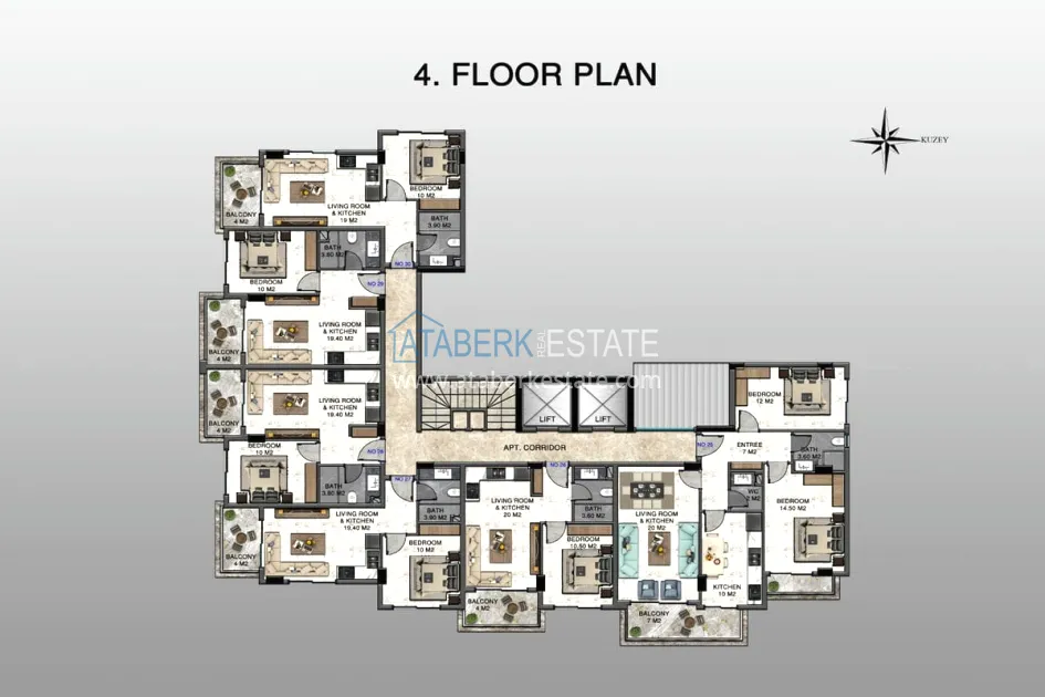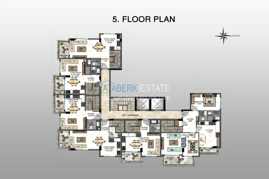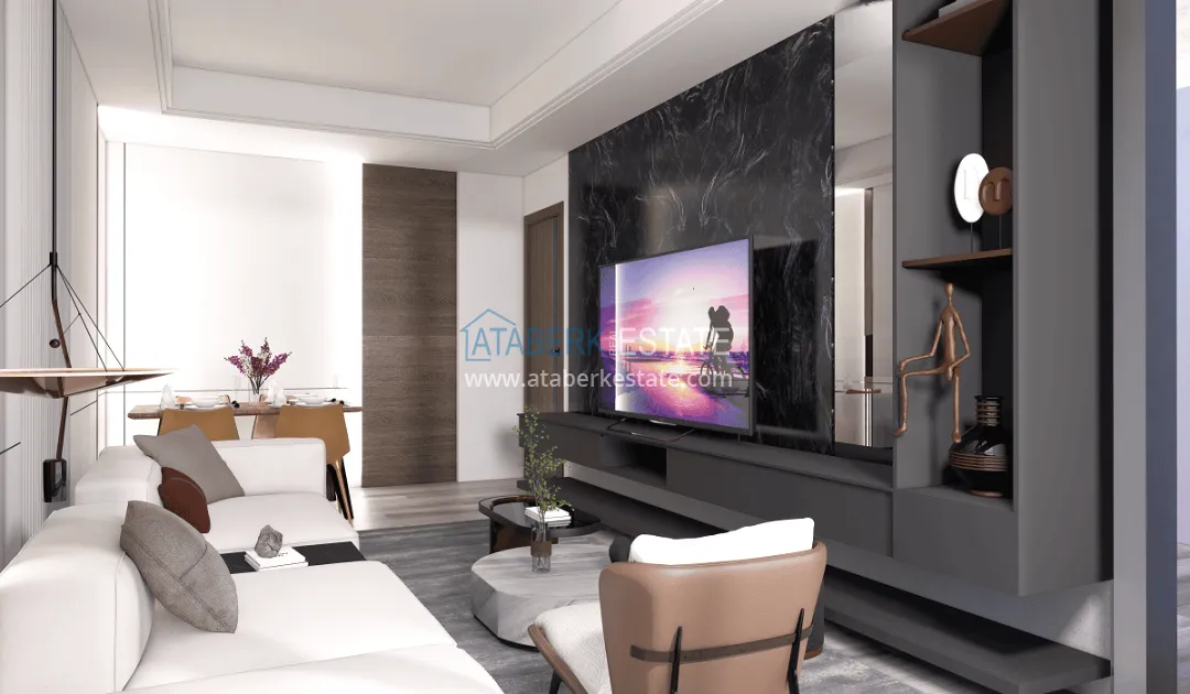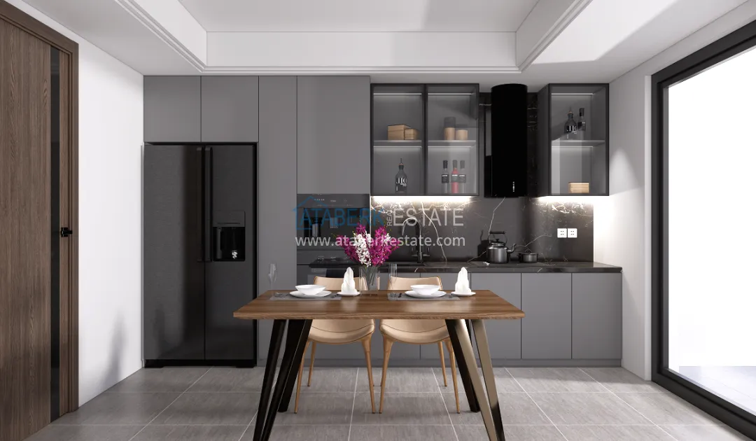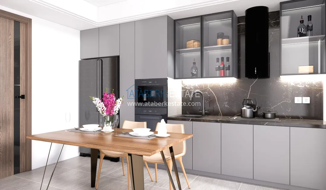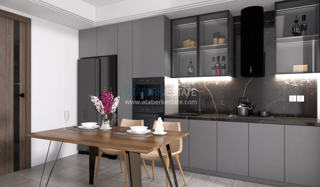 In the most beautiful resort town 3 km from the famous beach - Incekum (only 2 km to the city beach), in August 2022, the construction of a new residential complex with comfortable apartments and self-sufficient infrastructure started. The project has one 5-storey block for 30 apartments - layouts 1 + 1 with an area of 47 m2, 2 + 1 with an area of 82 m2, as well as 2 + 1 penthouses with an area of 73-83 m2. The apartments are rented with a high-quality fine finish, built-in kitchen furniture and equipped bathrooms.