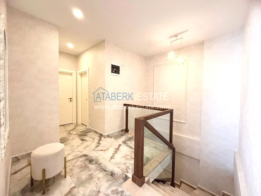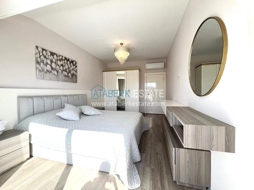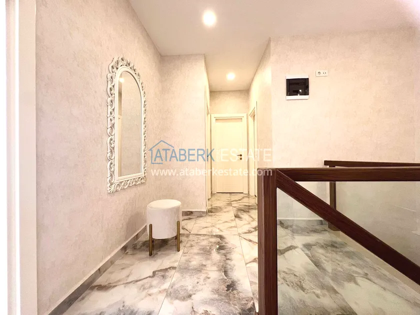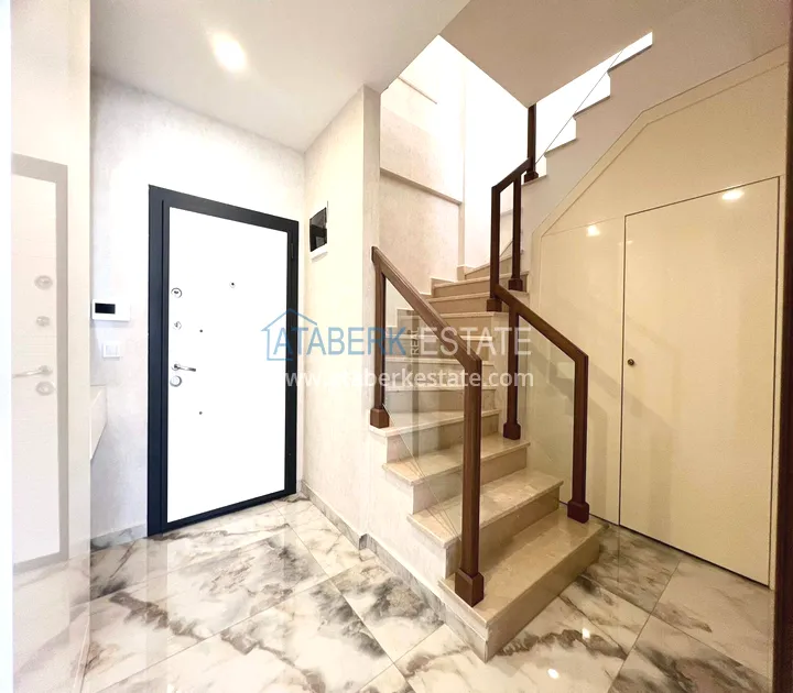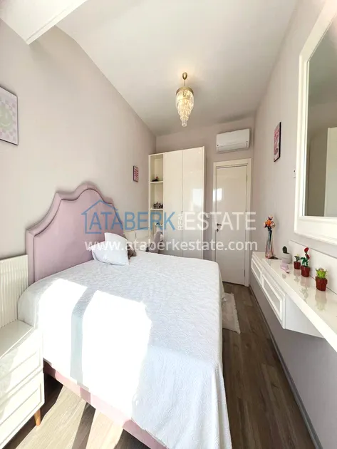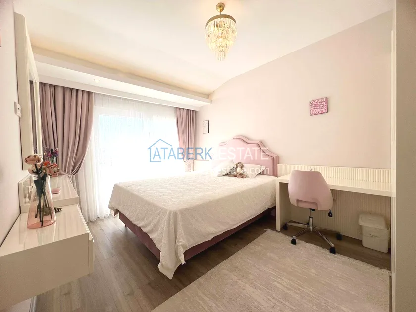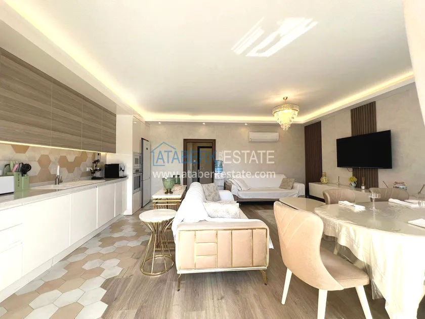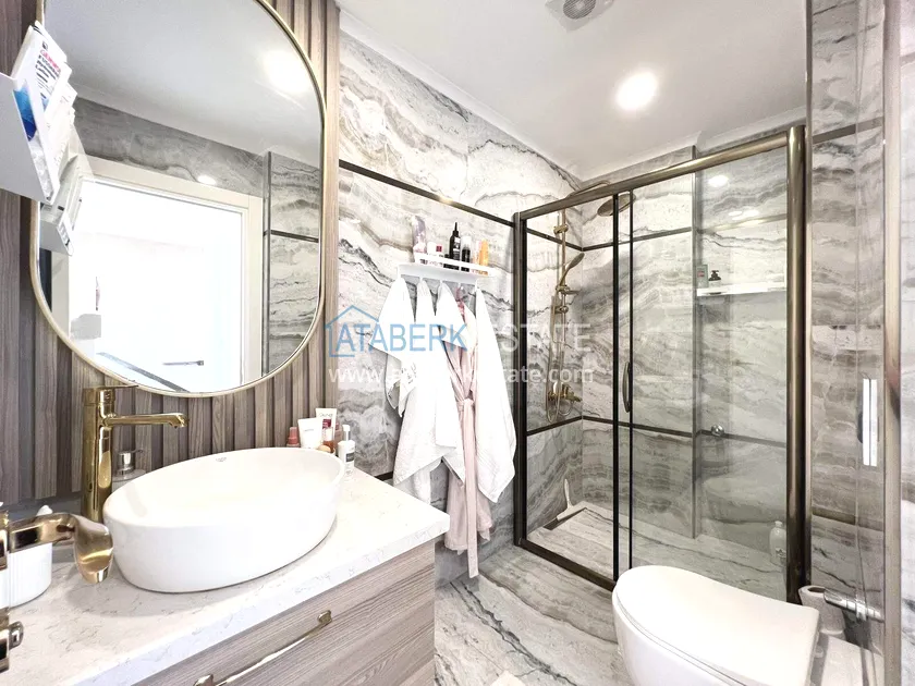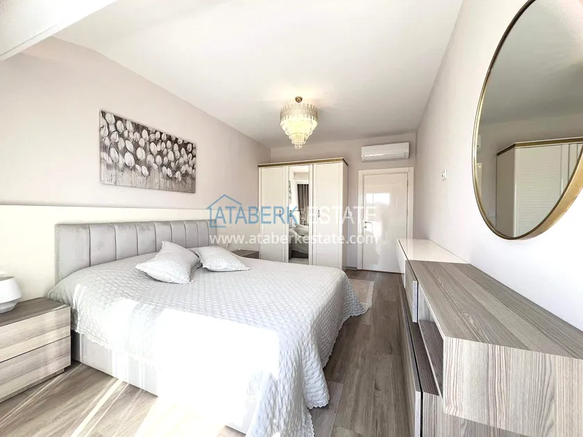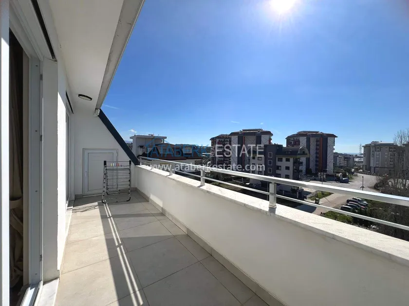 . The2+1 apartment occupies the upper two levels and has a total area of 125 m². The layout includes a living room with an open-plan kitchen, two bedrooms and two bathrooms. The first level has a spacious balcony, and the second level has an open terrace. The apartment is tidy, well-maintained and is sold furnished, which allows you to move in without additional investments. The two-level space creates the feeling of a separate house in
