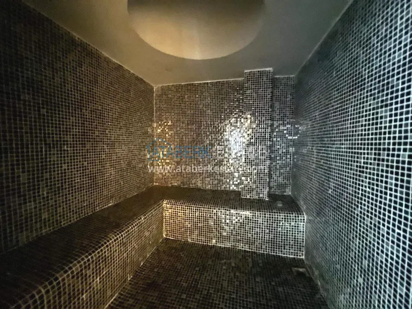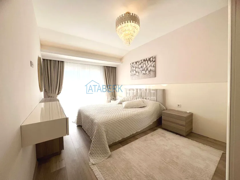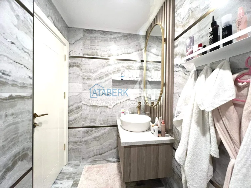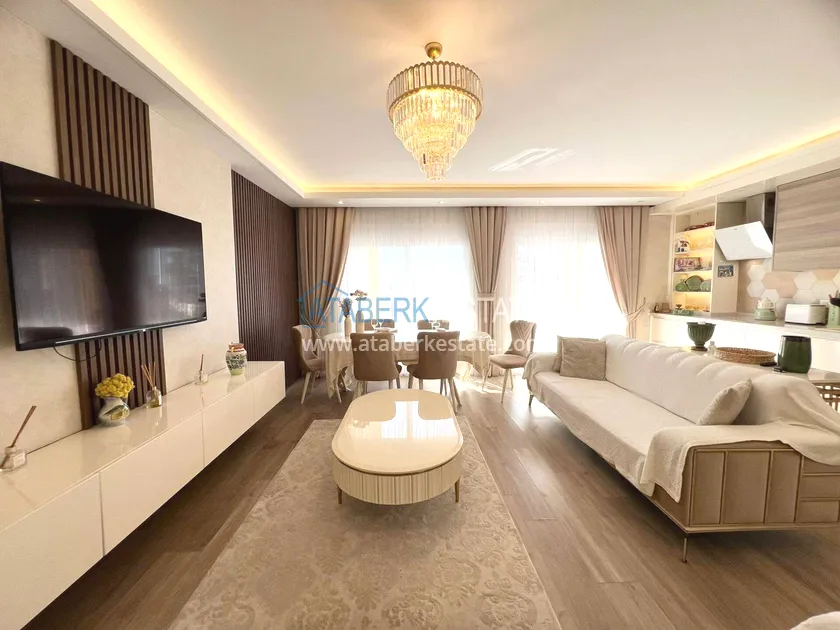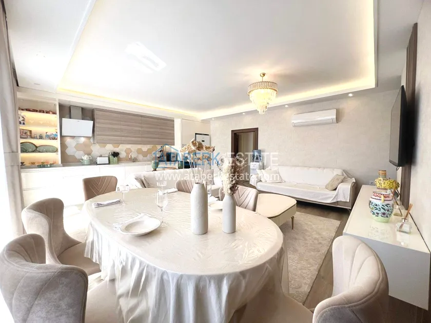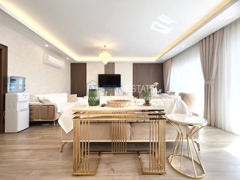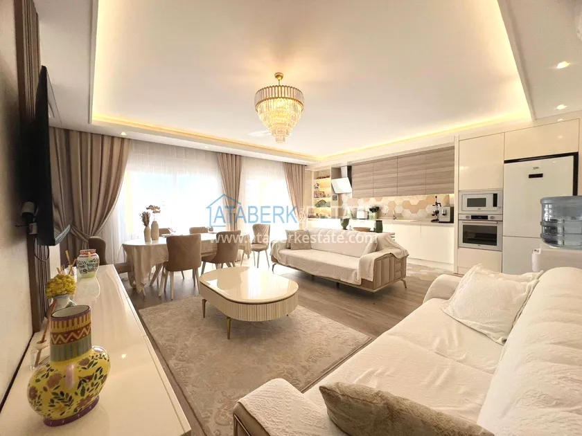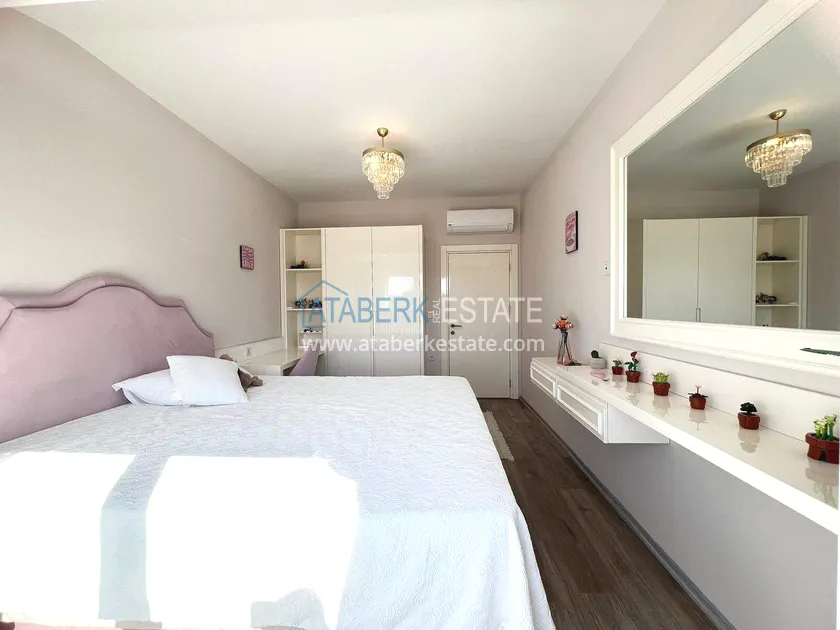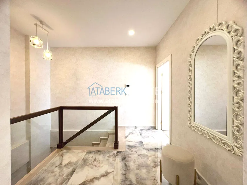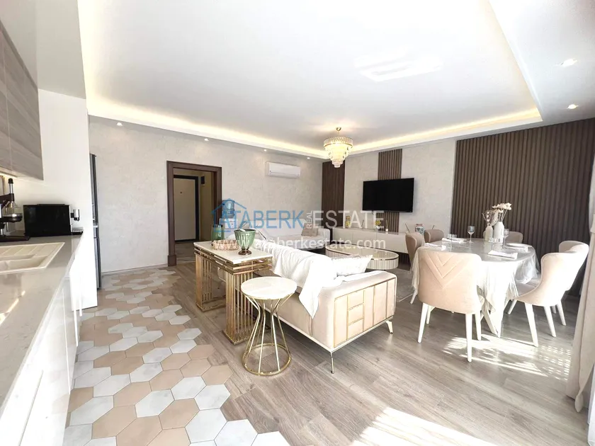 . The2+1 apartment occupies the upper two levels and has a total area of 125 m². The layout includes a living room with an open-plan kitchen, two bedrooms and two bathrooms. The first level has a spacious balcony, and the second level has an open terrace. The apartment is tidy, well-maintained and is sold furnished, which allows you to move in without additional investments. The two-level space creates the feeling of a separate house in