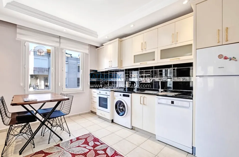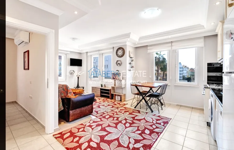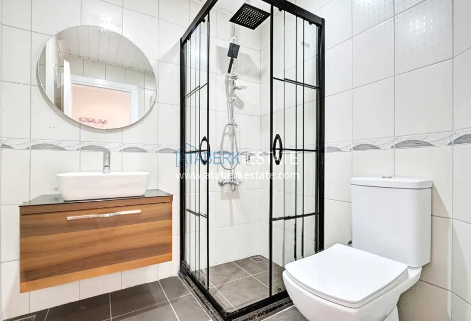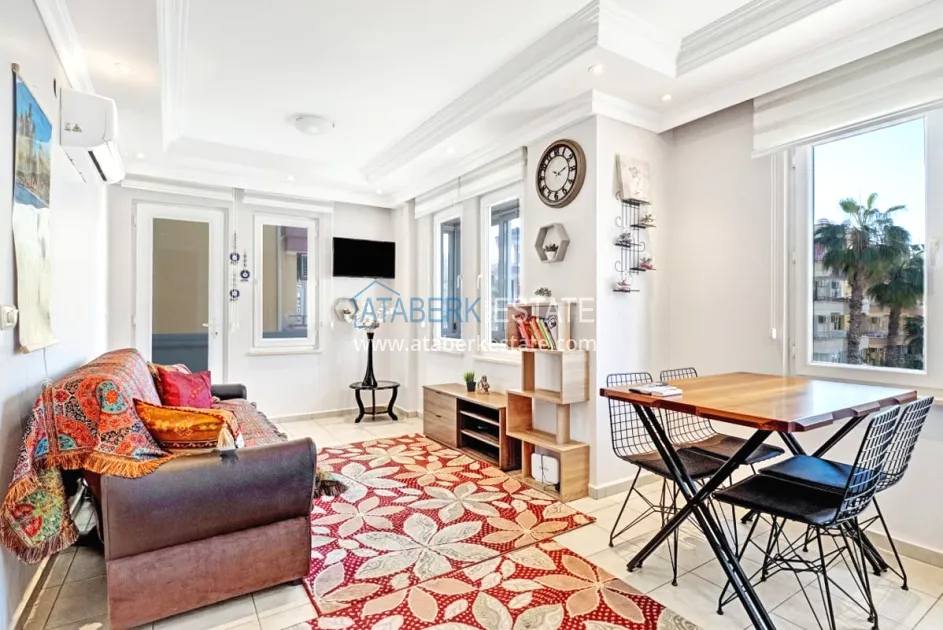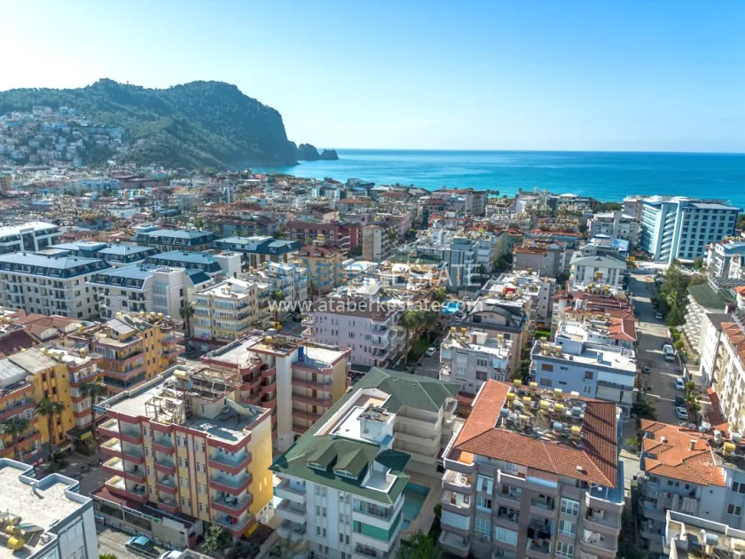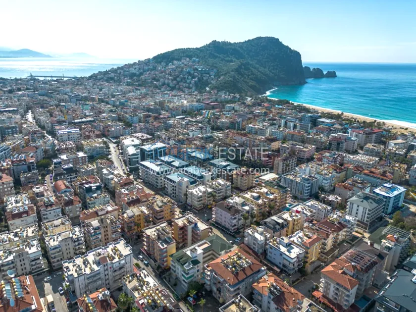 About the complex: It is located in a cozy low-rise part of Alanya and consists of 3 residential floors with an office space on the ground floor. The building has an elevator, an outdoor roof terrace and a well-kept garden with a swimming pool.