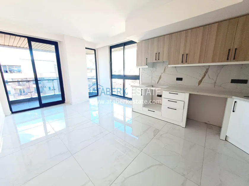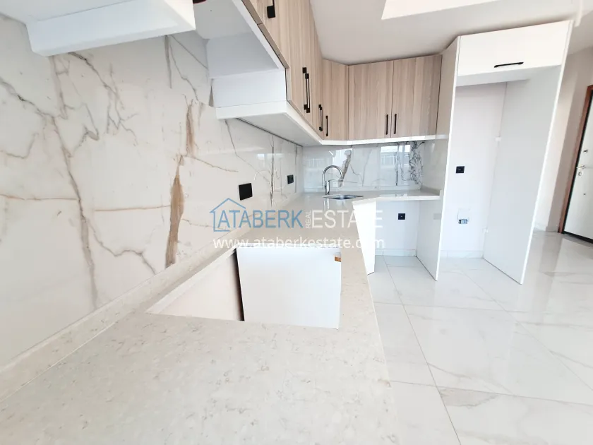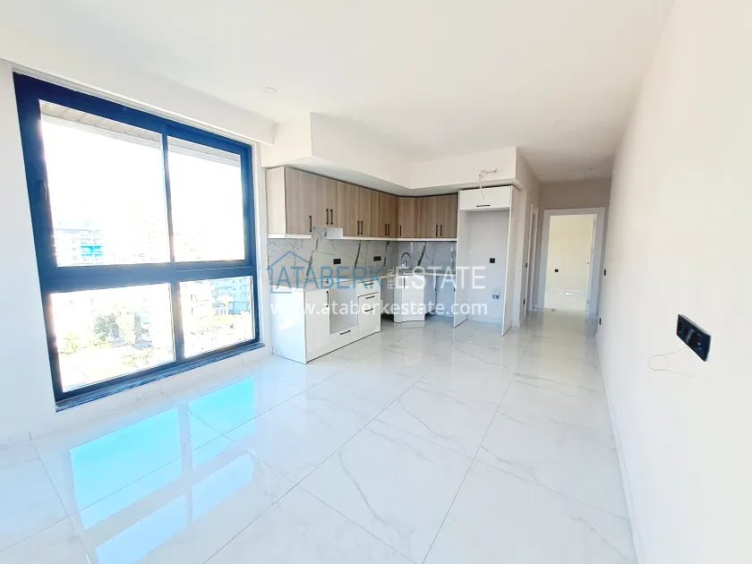 The 1+1 properties are located on the 8th floor, facing northwest. The total area is 50 m², which comfortably accommodates: a spacious living room combined with an open-plan kitchen, a bedroom, a bathroom and a balcony. It has a side view of the sea and an open view of the mountains. The apartment is being sold in the condition shown in the photo.