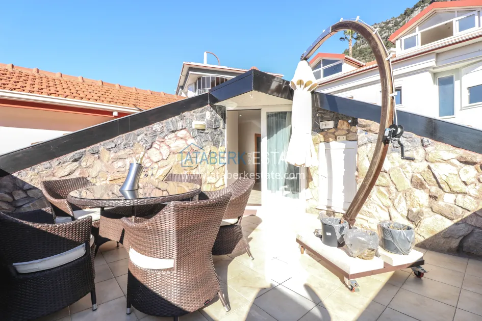The 3+2 duplex and the area of 225 m² will provide you with a comfortable stay and many opportunities for organizing space. It occupies the second and attic floors of a two-story building. On the first level, there is a spacious living room, an open-plan kitchen, two bedrooms and two glazed balconies. The second level includes a living room and one bedroom, as well as a large outdoor terrace. In addition, the apartment has two bathrooms, a dressing room and a storage room. The apartment is sold furnished and fully ready for living.