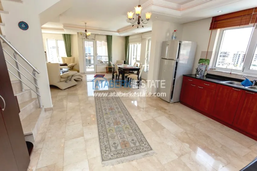 Spacious duplex for a large family in a European-type residential complex in the center of Alanya. Comfort and safety, pleasant neighbors, good location, stunning views of the sea make this offer even more attractive. Duplex, located on the upper floors, consists of 4 bedrooms, 2 living rooms with kitchen, 2 bathrooms, 2 balconies and 2 terraces.