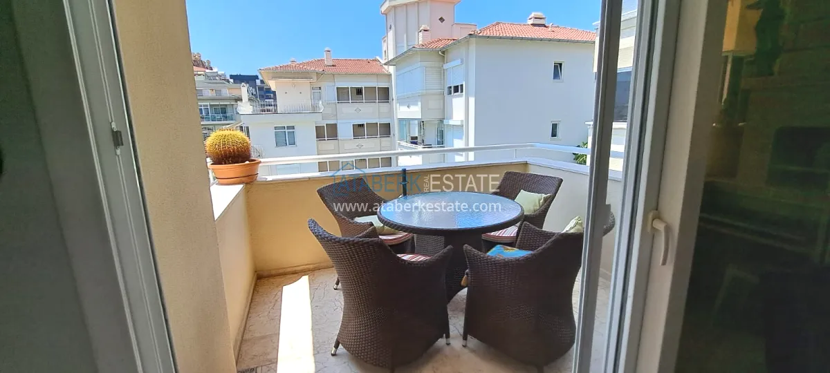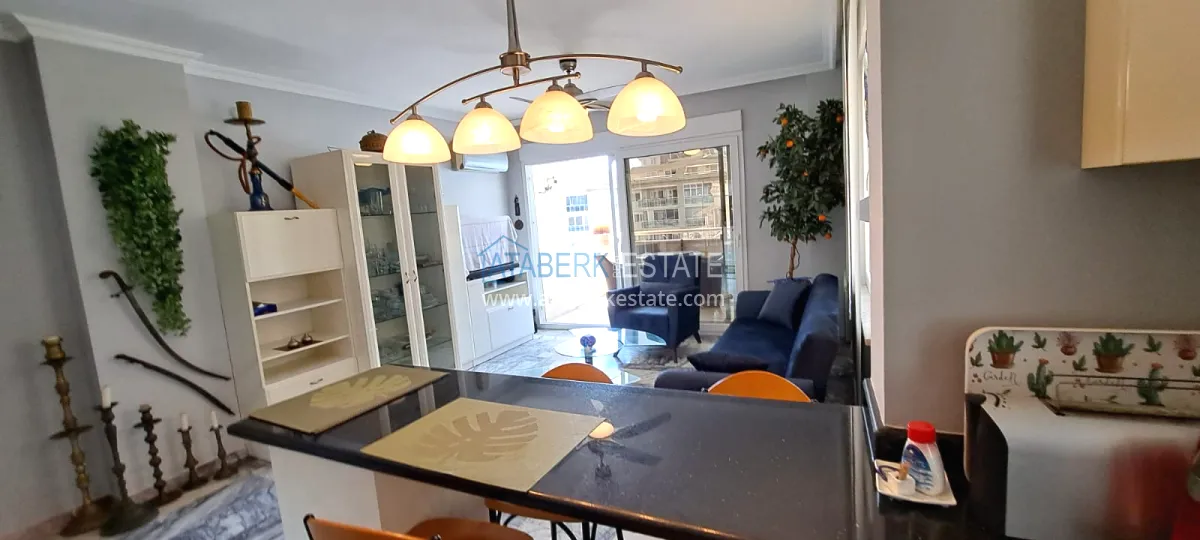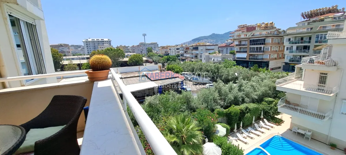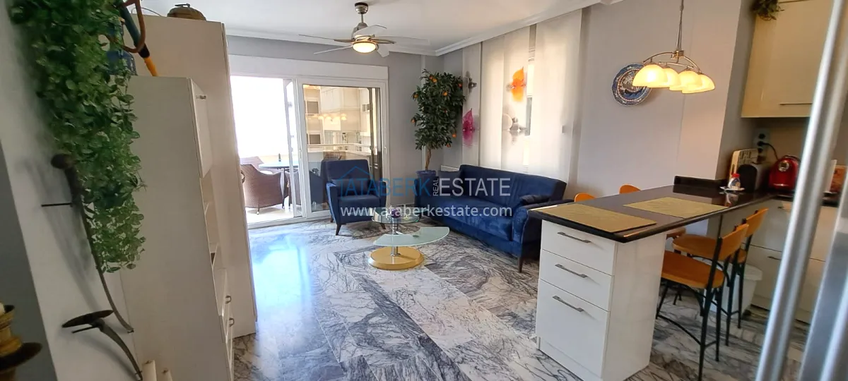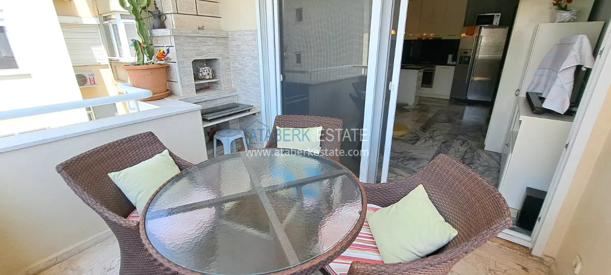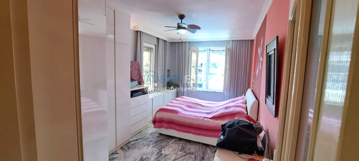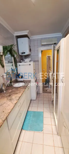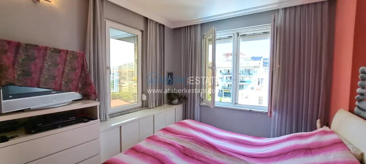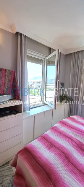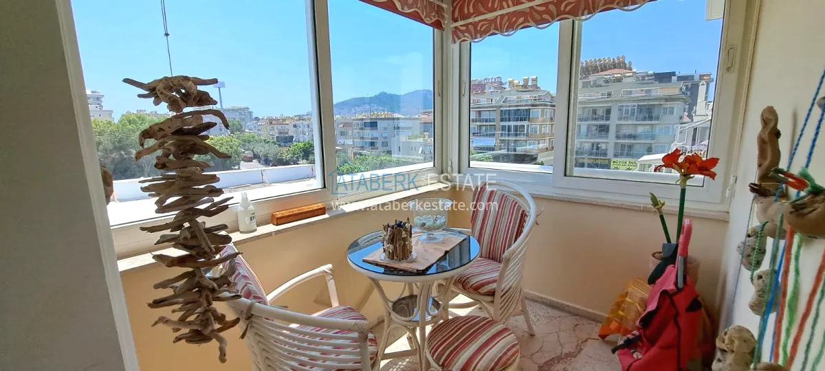 The 2+1 apartment with a total area of 85 m² is located on the third floor and is oriented to the east and south sides, so that the rooms always have plenty of natural light. The layout includes a living room with a kitchen area, two bedrooms, two bathrooms and two balconies. One balcony is open, the second is designed in the format of a fully glazed loggia, which is convenient for use at any time of the year. The apartment is sold furnished, the interior is well maintained and ready to move in. The windows and balconies offer views of the Alanya Castle and urban buildings, creating the feeling of living in the very heart of the city.
