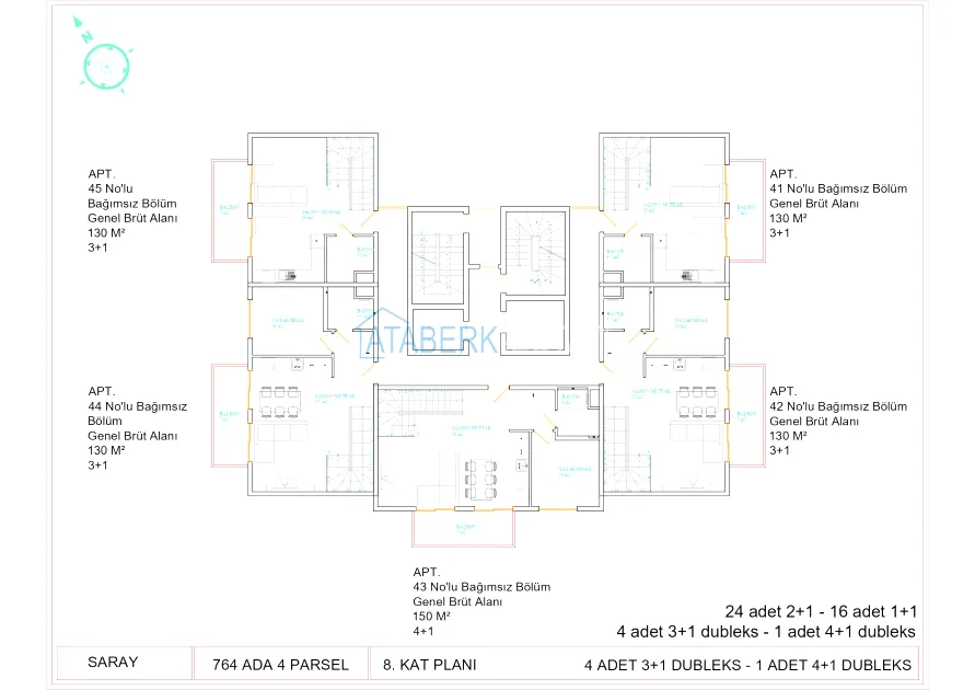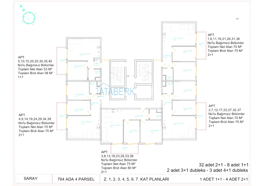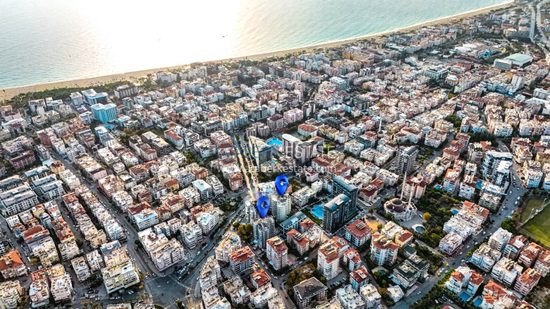 The residential complex is being sold on a land area of 2,966 m² and will consist of two 10-storey buildings with 90 apartments planned. The closed area of the complex is designed in such a way that residents can spend time comfortably without leaving the residence. A self-sufficient internal infrastructure is provided that meets modern requirements for resort-style urban residential projects. The distance to the famous Cleopatra Beach is about 580 meters, a rare combination for new developments in the city center.