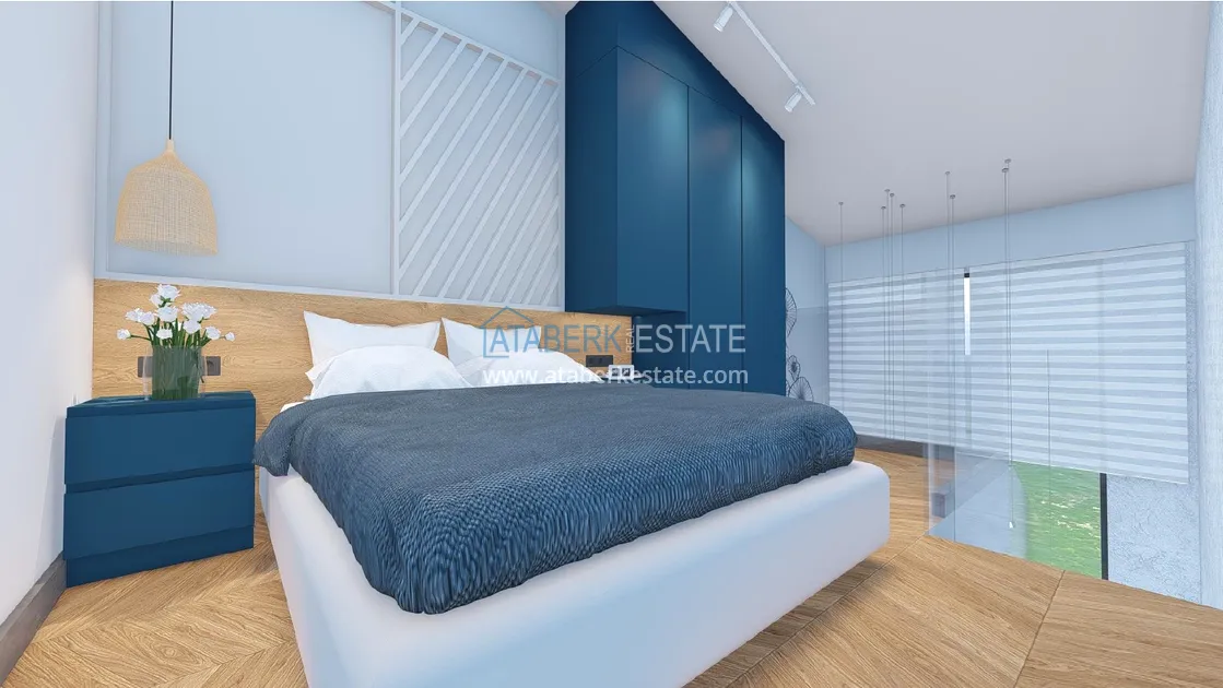 The complex will feature apartments: 40 apartments 1 + 1 from 42 m2 to 50 m2. 10 apartments - two-level layout 1 + 1 and 2 + 1 from 71 m2 to 99 m2. If desired, the two-level apartments can be divided into two apartments with a 1 + 1 layout. It is apartments with a layout of 1 + 1 on two floors that will be non-standard for a typical building in Alanya. The apartments will be handed over with a fine finish.