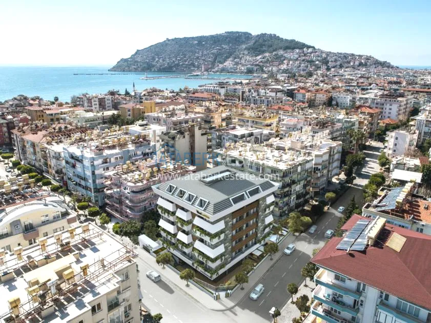 The residential complex will be located just 250 meters from the central promenade and Keykubat beach in Alanya. There are no free plots for construction in this part of the city, so the construction company bought a hotel in such a chic place, completely demolished it, freeing up the site for building a residential complex. The complex will be located on a quiet street, but at the same time it is one of the popular streets of the city, which leads from the central Ataturk Avenue to a street of 25 meters. On both sides of the street, in the houses on the ground floors, there are shops, restaurants and cafes, hairdressers and beauty salons, and other urban infrastructure. Going down to the embankment, right next to the sea are the best beach clubs in the city. The beach in front of the complex has a sandy shore and a smooth entrance to the sea. If you go up from the complex, you will find yourself on a street of 25 meters, which is very popular not only among tourists, but also among local residents. There are various offices, banks, nearby Sala Pazari store (various household utensils), mobile phone offices, hairdressers, vegetable and butcher shops, etc.