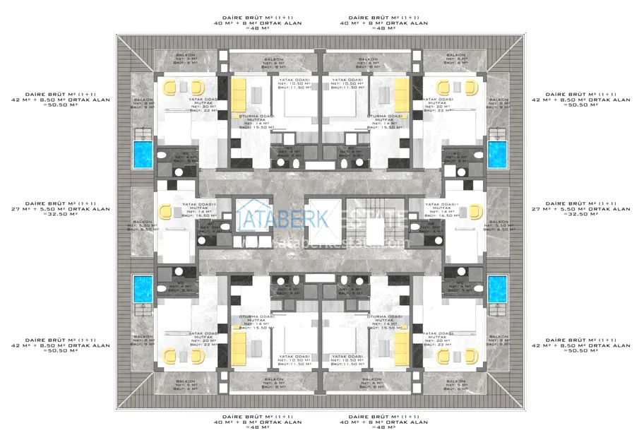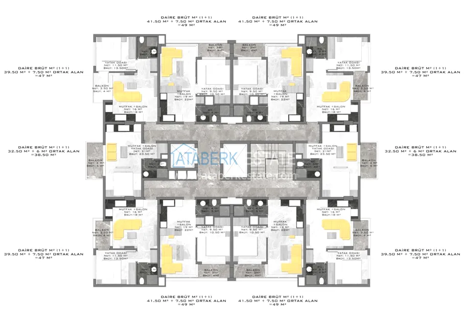 At this stage, AtaberkEstate exclusively offers you options at the very initial prices of the zero stage of construction. There is also an interest-free installment plan until the end of construction.