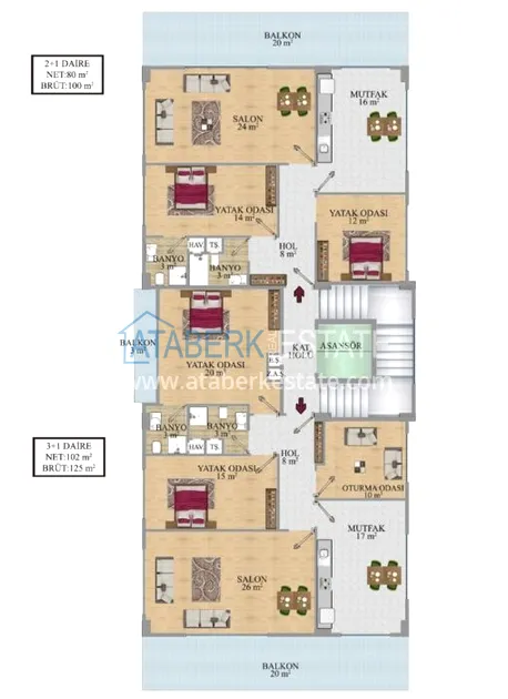 The complex consists of one block of only 5 residential floors, the first one will house the internal infrastructure. This is a new building, 2021, with reliable technical communications and a good location. Within a radius of 1000 meters from the residential complex there are many grocery stores, there are pharmacies, cafes, as well as schools, hospitals and kindergartens. There are also public transport stops nearby. Distance to the sea and Cleopatra beach is about 12 minutes on foot.