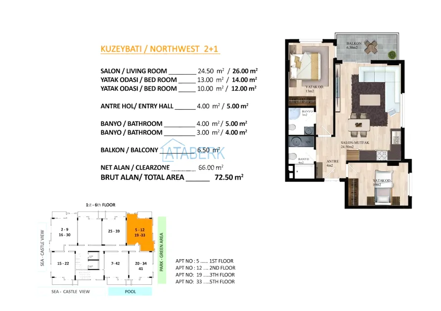 The project will be implemented on a plot of 1,538 m2, consist of one 8-storey block, a closed, protected and landscaped area, and include a range of services for a more comfortable stay. Functional and comfortable apartment layout, certified building materials, excellent location — just 700 meters from the famous sandy beach. Also, a stable construction developer with extensive experience will provide you with a comfortable lifestyle and guarantee the reliability and safety of your investments.