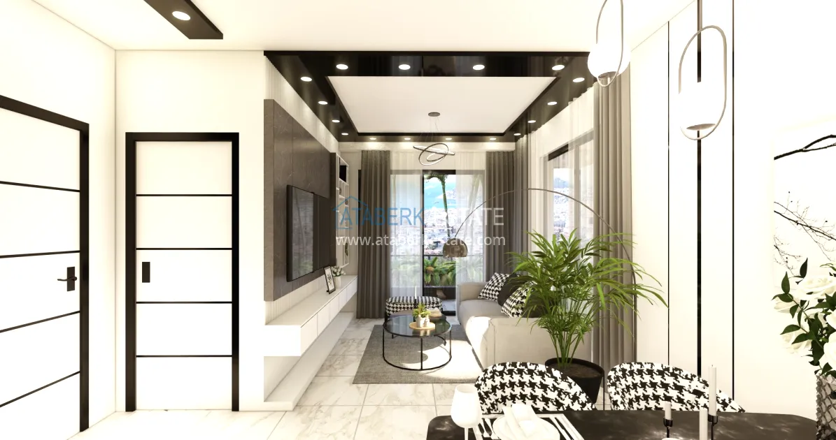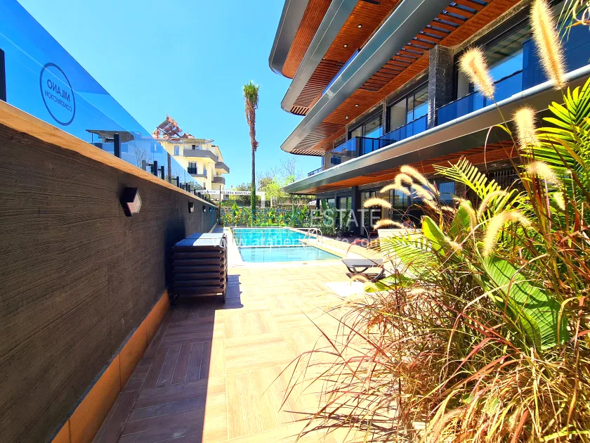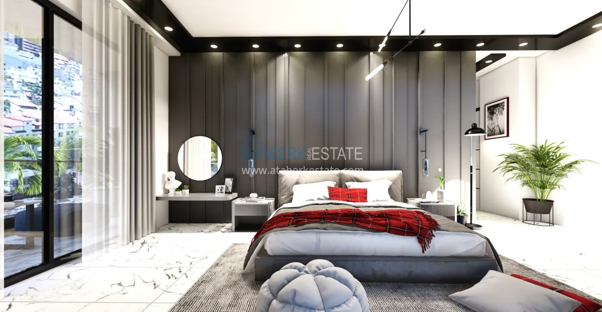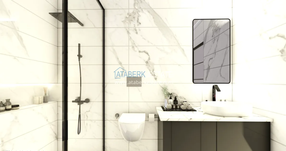 A modern high-tech residence is located in one of the most prestigious areas of Alanya — Buyuhasbahce. The complex is built on a hill, which provides magnificent views of the Mediterranean Sea, the historic fortress, the harbor and the picturesque surroundings. It combines privacy and comfort: all the necessary urban infrastructure facilities are within walking distance, but the area remains quiet and peaceful.