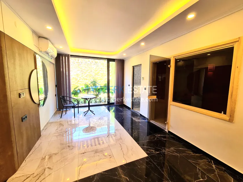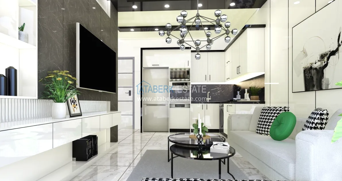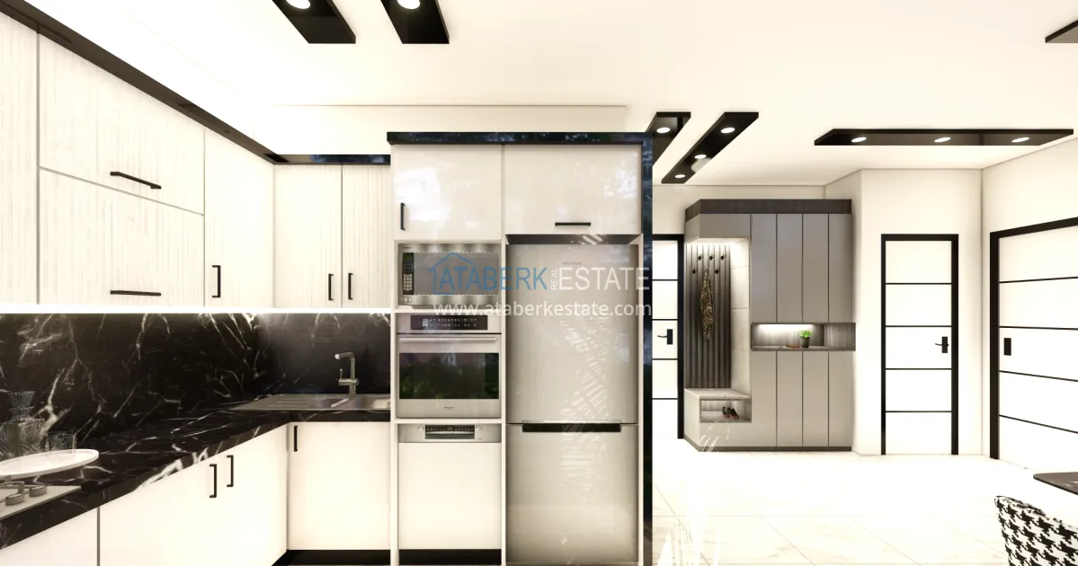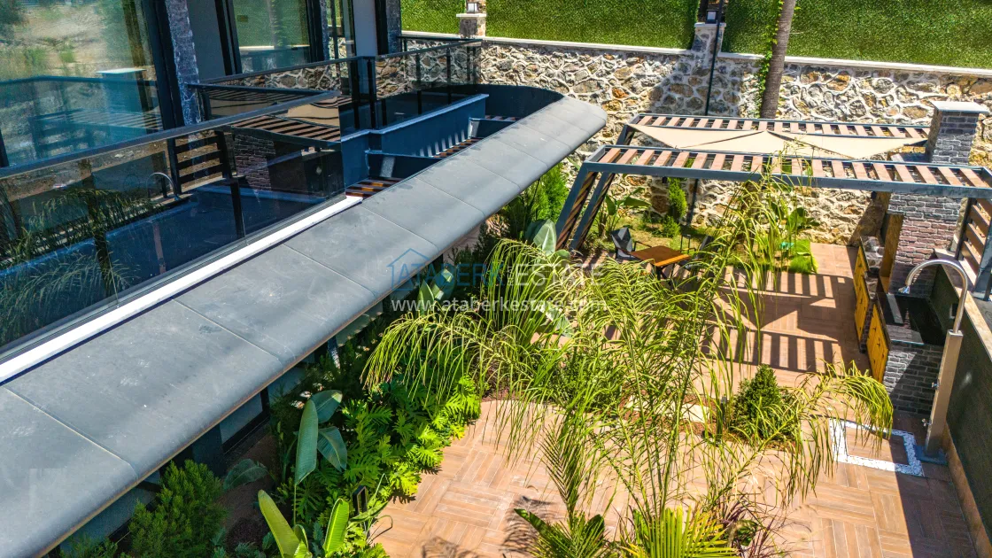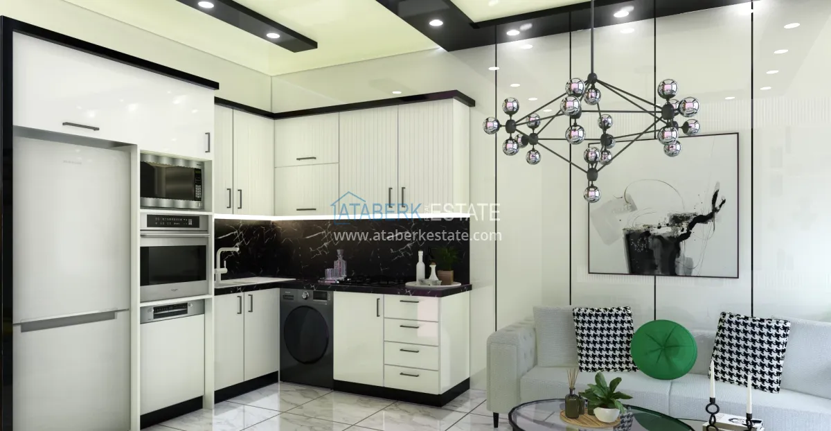 A modern high-tech residence is located in one of the most prestigious areas of Alanya — Buyuhasbahce. The complex is built on a hill, which provides magnificent views of the Mediterranean Sea, the historic fortress, the harbor and the picturesque surroundings. It combines privacy and comfort: all the necessary urban infrastructure facilities are within walking distance, but the area remains quiet and peaceful.