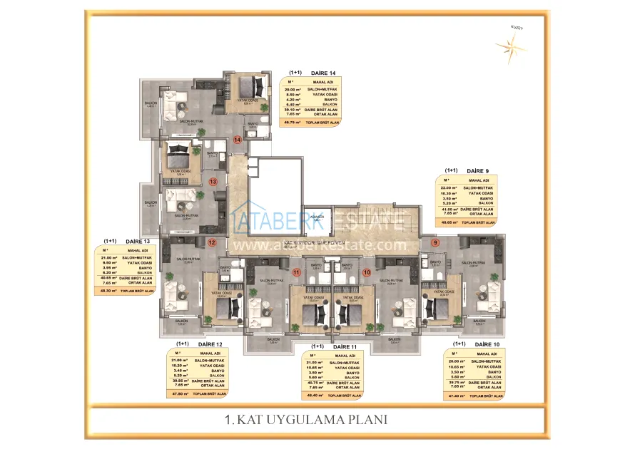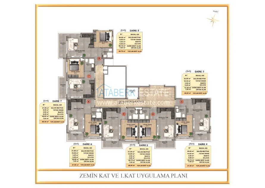 One-bedroom 1+1 apartments with an area of 40 and 41 m2 remain on sale. The price includes full finishing, built-in kitchen furniture, and equipped bathrooms.