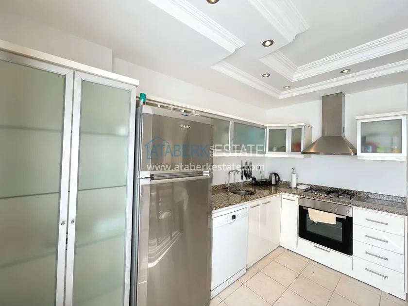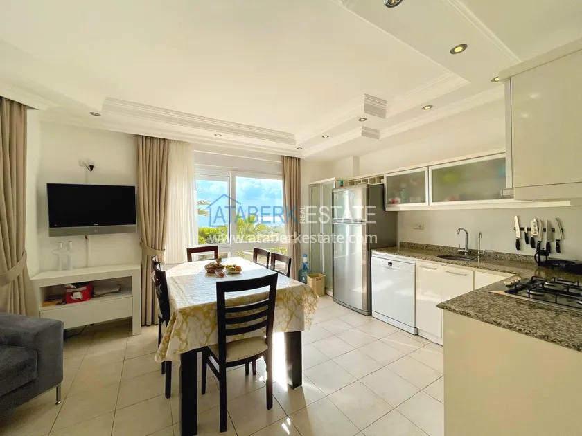 Cozy, spacious apartments with a 2+1 layout are located on the ground floor of a 4-storey building, with a total area of 100 m2, on which there are two bedrooms, a living room combined with an American-style kitchen, a bathroom with a jacuzzi, an entrance hall and three balconies. A nice bonus is that the apartment is sold in the form shown in the photo - furniture, household appliances and interior items.