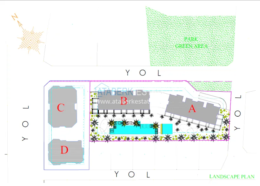 The residence is located 800 meters from Cleopatra Beach in the very center of the city, 150 meters from a large fish market. It includes three blocks of 9 floors each, as well as a closed protected area and self-sufficient infrastructure. The complex is scheduled to be put into operation in May 2025.