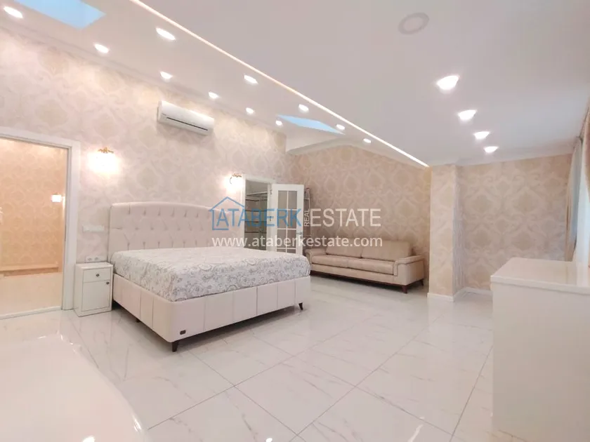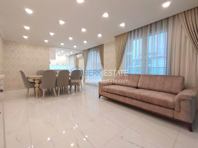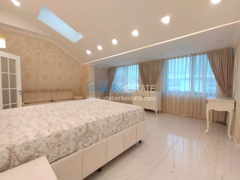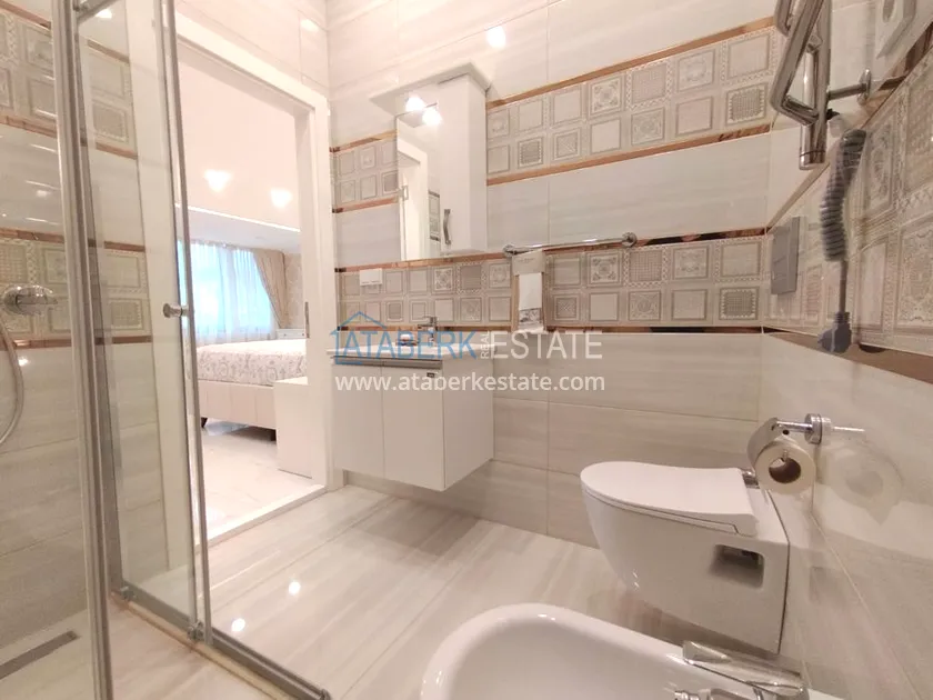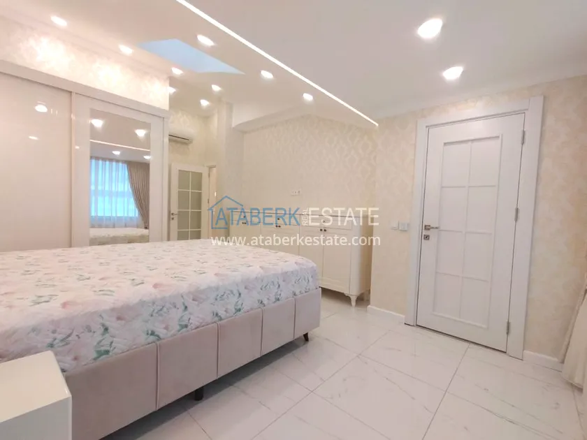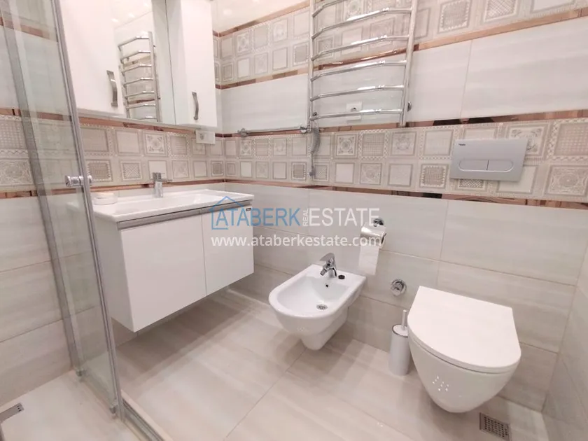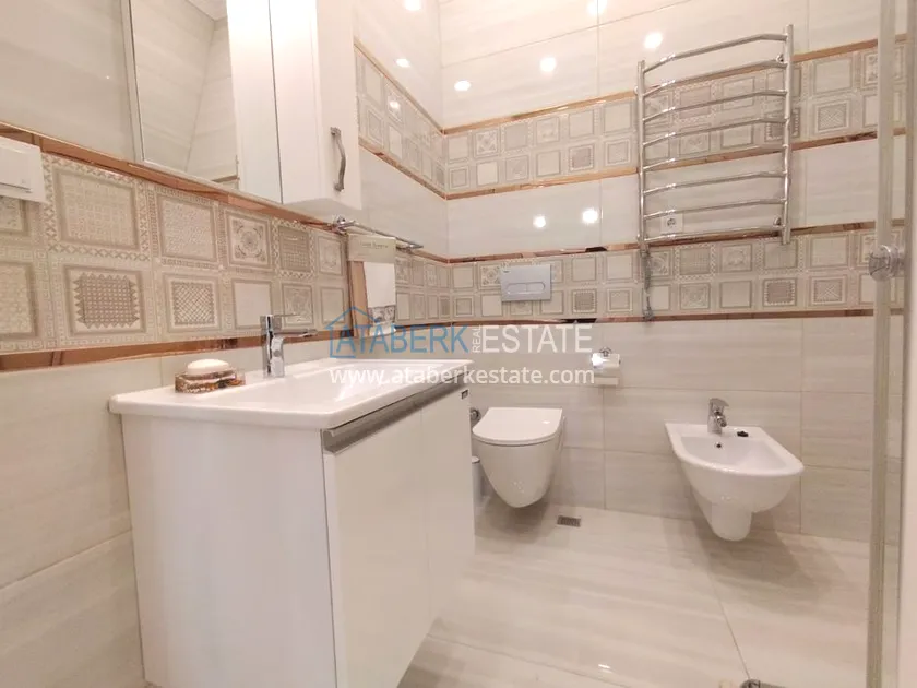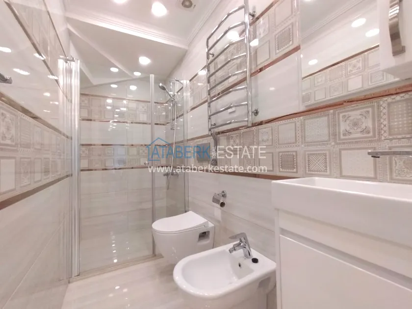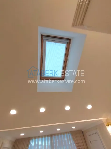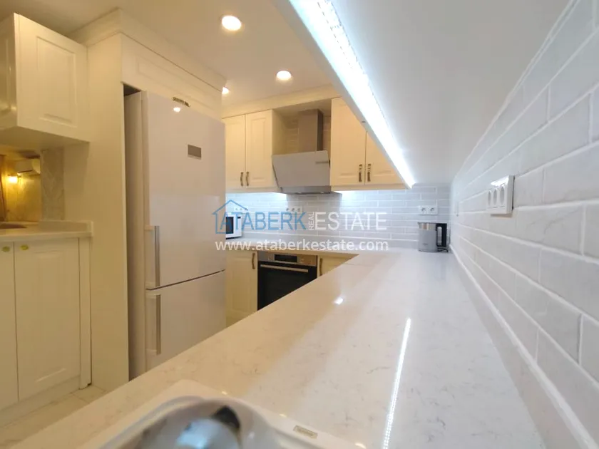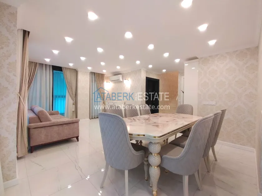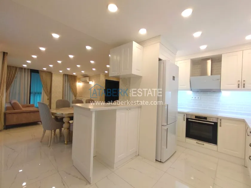 3+1 layout apartment with a total area of 150 m2, south-west oriented, located on the top two floors of the complex, has a living room, American style kitchen, 3 bedrooms, 3 bathrooms and a balcony. The apartments are for sale with all furniture and appliances as in the photo.