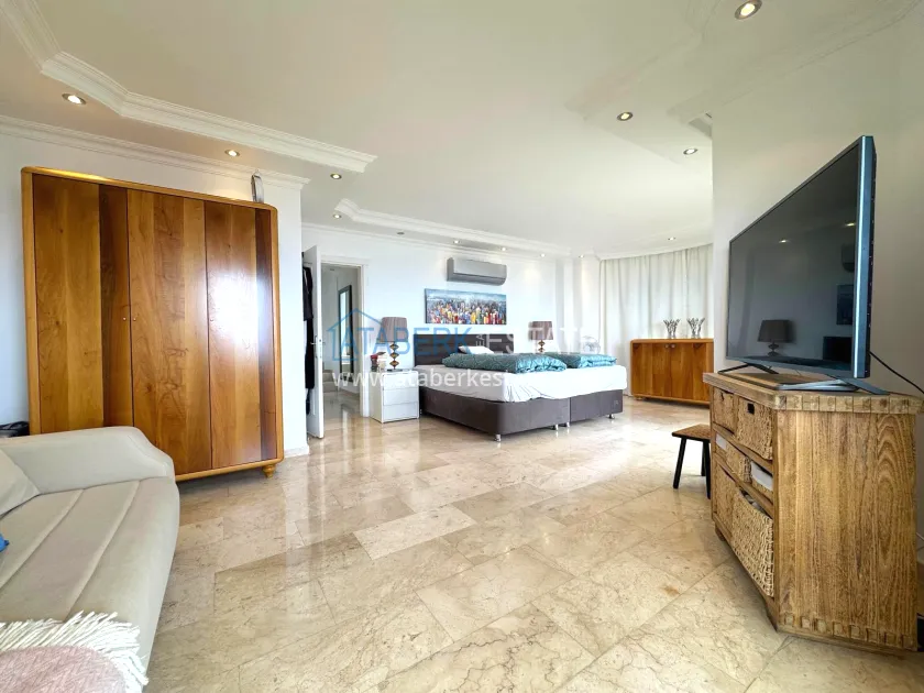 This 4+1 villa with a total area of 200 m² is fully furnished and ready to move in. All living spaces and common areas have open views of the Mediterranean Sea, the historic fortress, the mountains and the city. The layout includes spacious living areas, a living room with an open-plan kitchen, four bedrooms, three bathrooms, a jacuzzi, two balconies and three terraces that are used as full relaxation areas. The villa is equipped with a system of warm floors in all rooms and bathrooms, high-speed Wi-Fi and sophisticated engineering solutions. An additional advantage is the two separate BBQ areas, which allow you to comfortably organize outdoor activities.