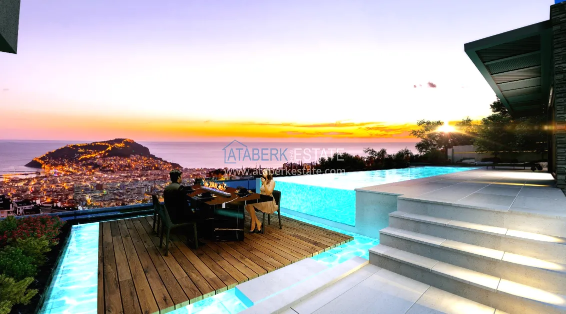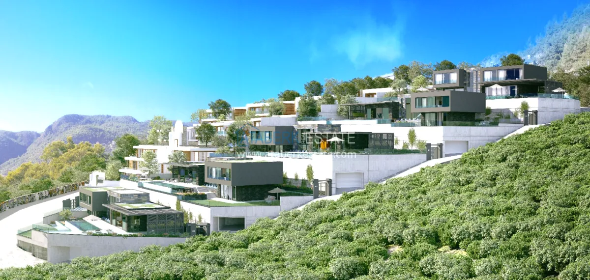 This elegant project of five exclusive modern villas is under construction. It is located on the picturesque slope of the Toro Mountains in a quiet and beautiful secluded place in the popular residential area of Alanya, just 3 km from the Mediterranean coast. The ultra-modern design and elegance of each villa, private area, maximum privacy and tranquility, fascinating panoramic views, the use of innovative technologies in construction — all this characterizes this project.