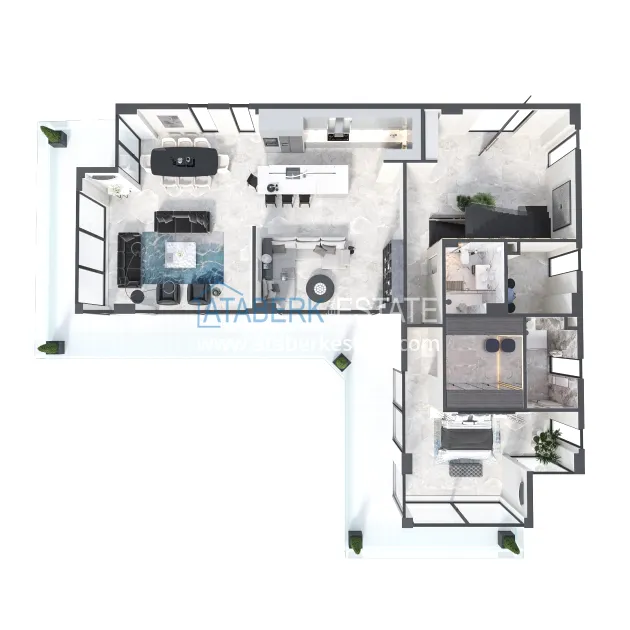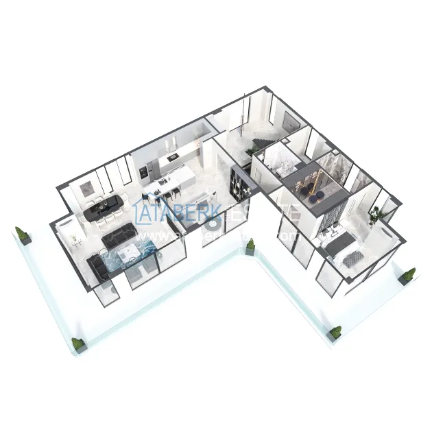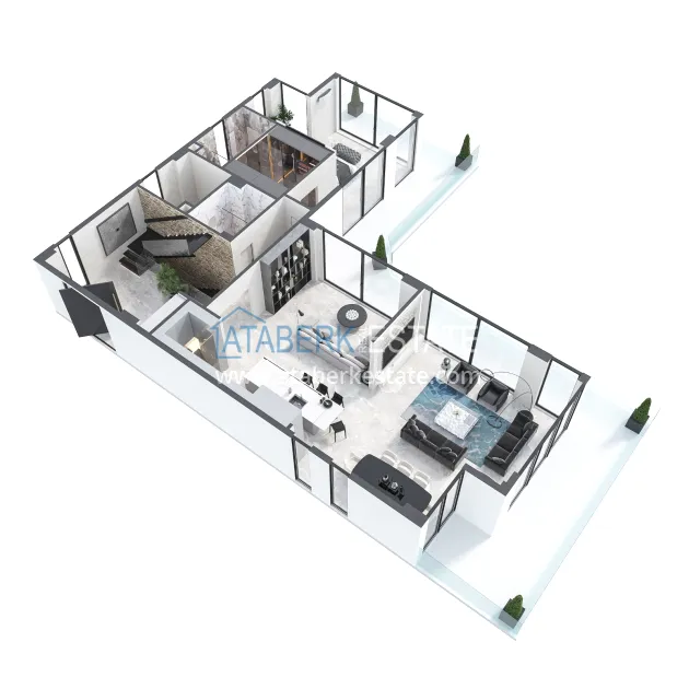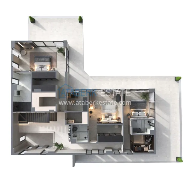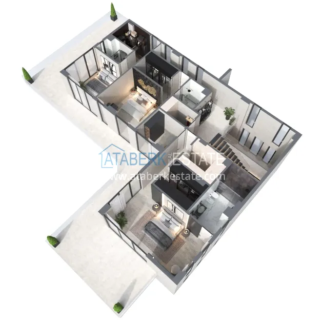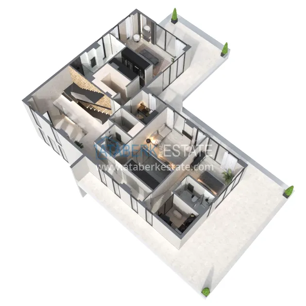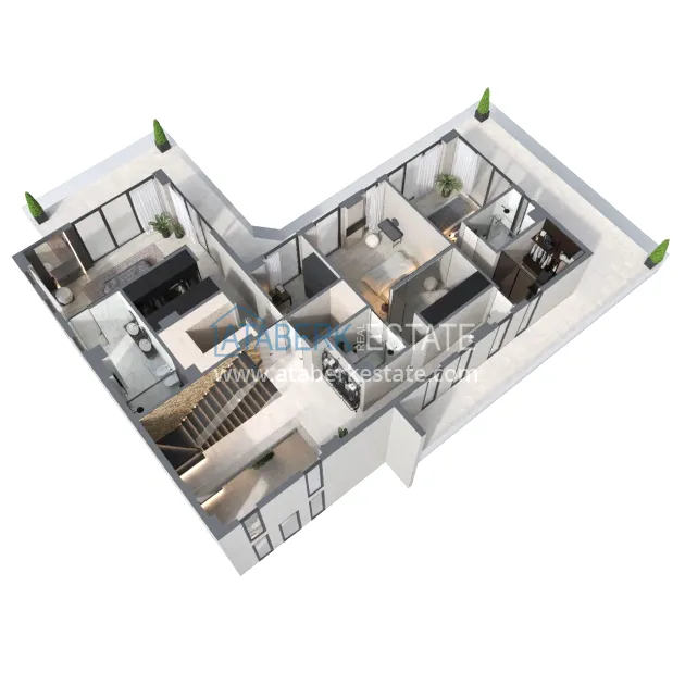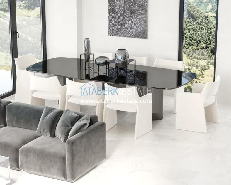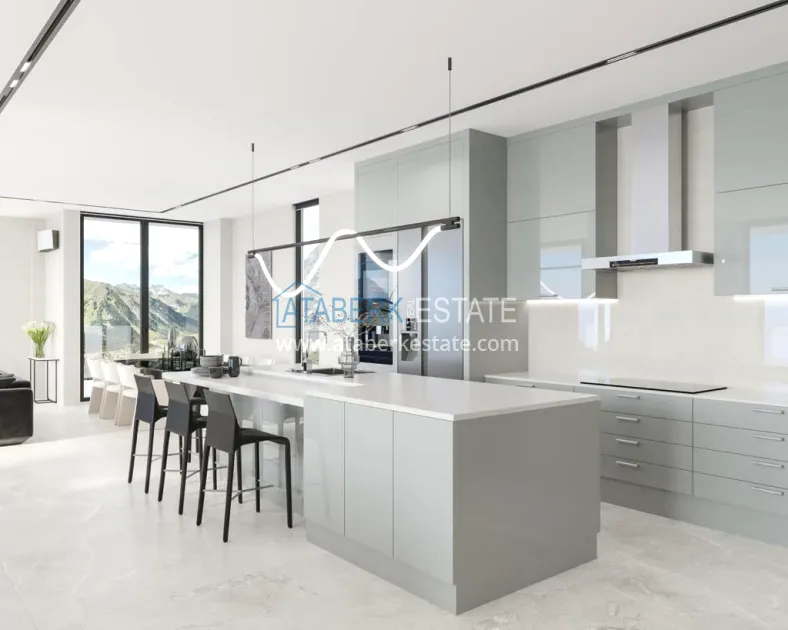 The Bektash district is located on picturesque slopes and is one of the most prestigious in Alanya. It has a secluded atmosphere, fresh mountain air and breathtaking panoramic views. At the same time, the entire city infrastructure is within easy reach: the center of Alanya is just a 10-minute drive away, and the beaches are about 3 km from the villa.