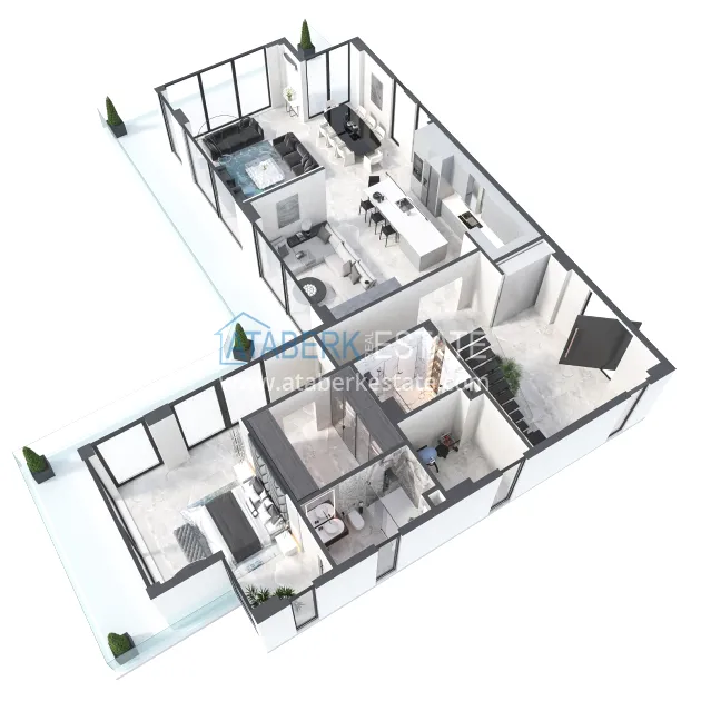 The modern detached villa is built on a plot of 1103 m² and offers a spacious and thoughtful layout: five bedrooms (each with an individual bathroom), three spacious living rooms, a kitchen, two balconies, a terrace and seven bathrooms. The house includes a hamam, sauna, gym, as well as a Smart Home system, central air conditioning, heating and heated floors. The villa is sold with high-quality finishing, an installed kitchen and fully equipped bathrooms.