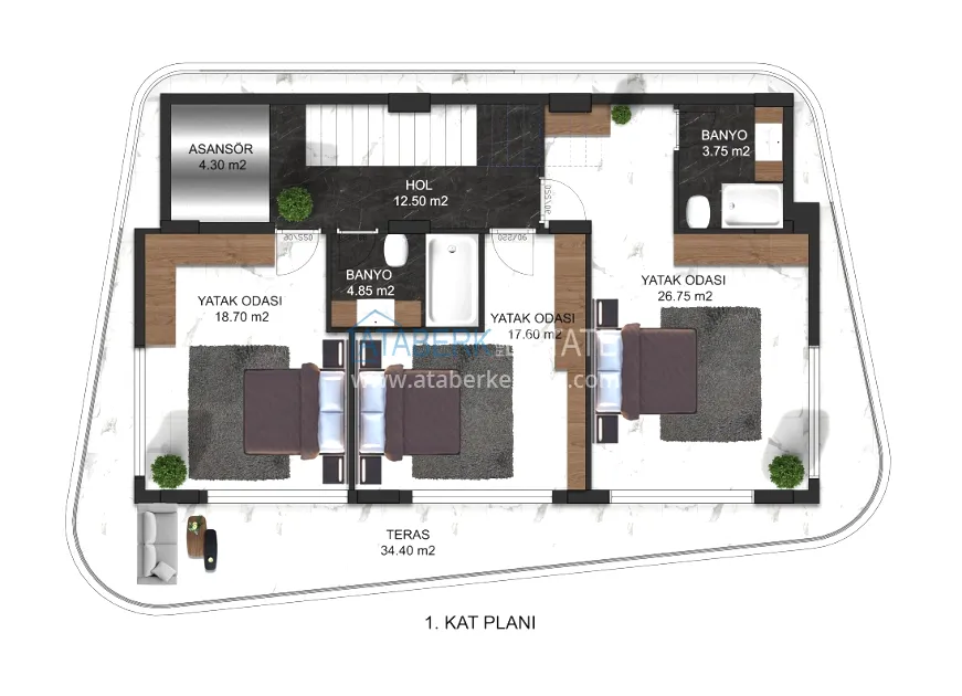 The project includes three three-level villas with a total construction area of 1,394 m2. All villas have the same 4+1 layout with an area of 282 m2. According to the project, each house will have: a basement — a fitness room, a hammam, a sauna, a relaxation room and a bathroom; the first entrance floor will have a living room combined with an American-style kitchen and a guest bathroom; the second living floor will have 3 bedrooms, 2 bathrooms and a huge balcony around the entire perimeter of the floor. All villas will be equipped with Smart Home, Sound System, Satellite, Security and elevator systems. The villas are sold fully finished, with a ready-made design. During the construction phase, you can discuss the layout and design in detail, and make changes to your liking. High-quality materials will be used in construction, which will help maintain comfort and safety for many years.