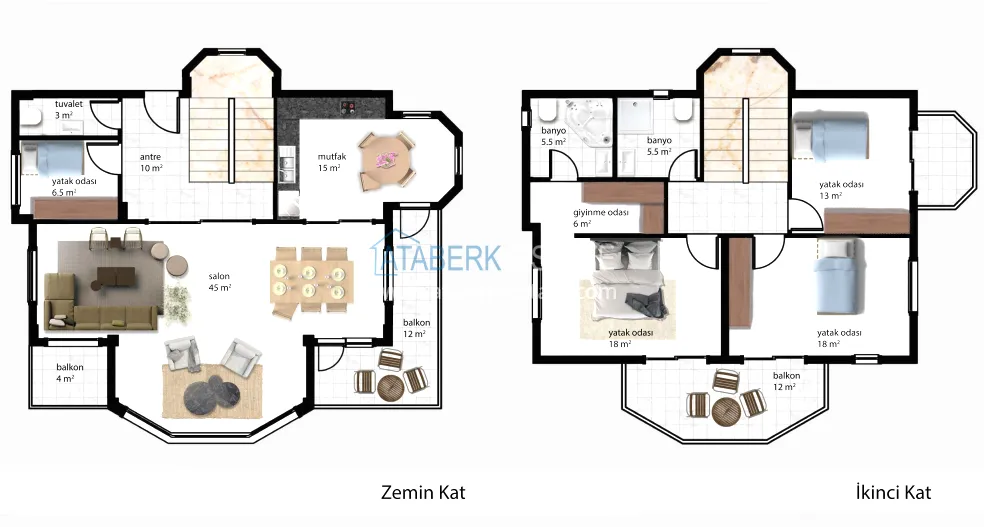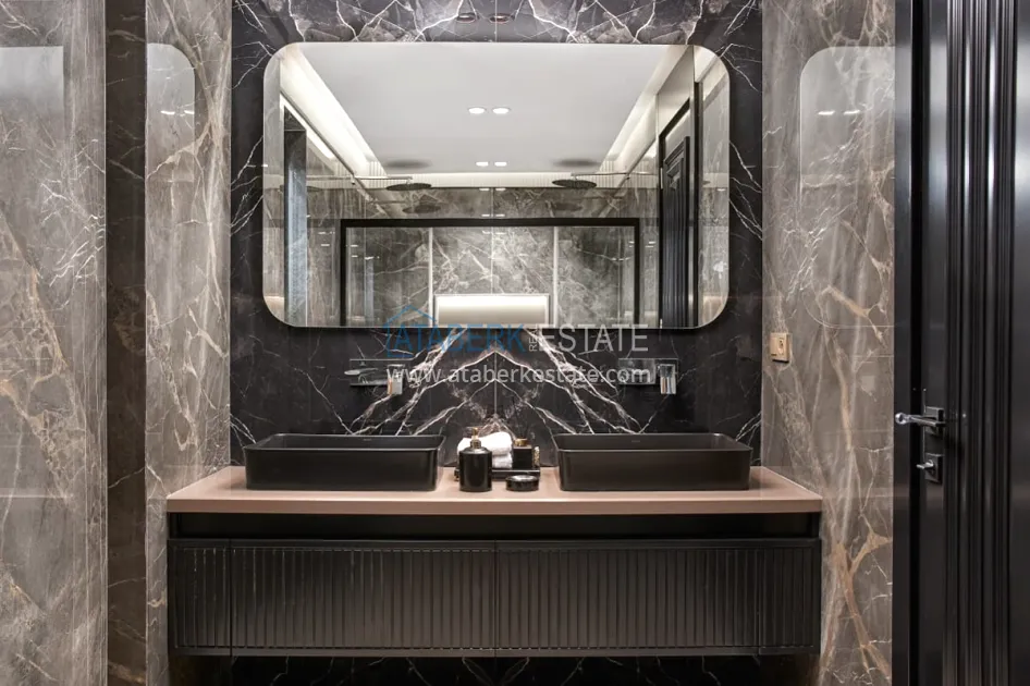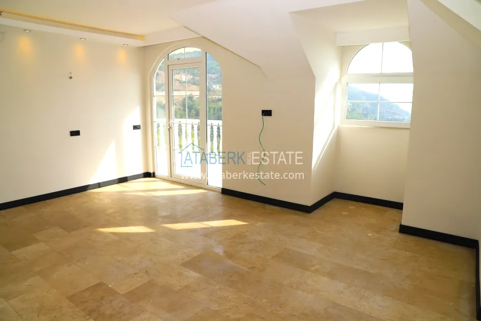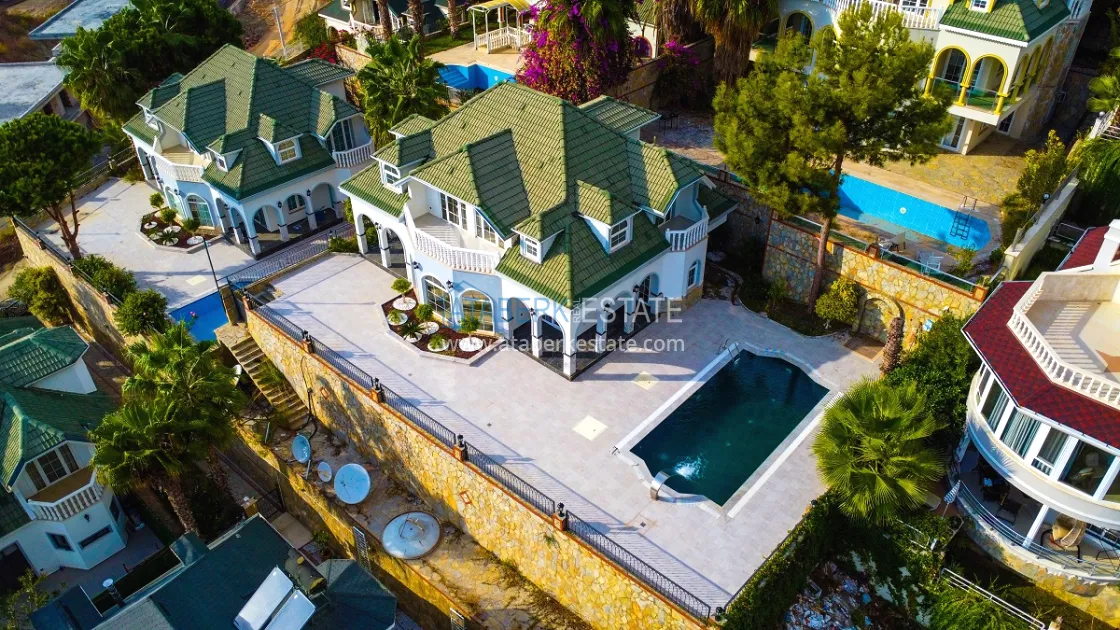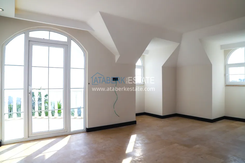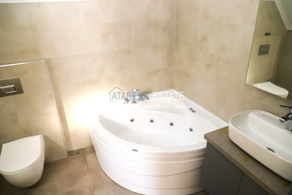The project is being carried out by a major construction company. Located in a quiet area, close to the city center, overlooking the sea, the Alanya Castle and the natural landscapes of the Mediterranean coast. On a plot of 1,050 m2 there are two villas, each of which has an area with a plot of 525 m2 including a swimming pool with a shoulder massage system (cobra) and parking. Villas are two-storey. Ground floor: salon, bathroom, utility room, and a separate room for work (office). Second floor: bedroom with bathroom, jacuzzi and spacious dressing room, as well as two bedrooms with separate bathrooms.