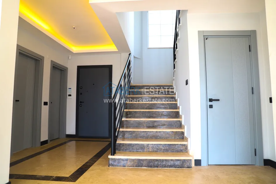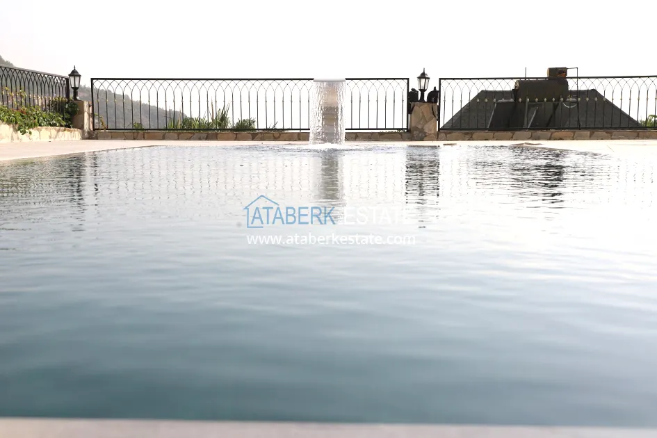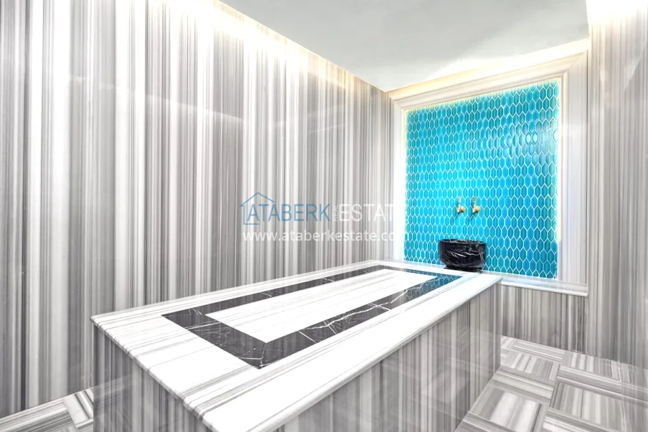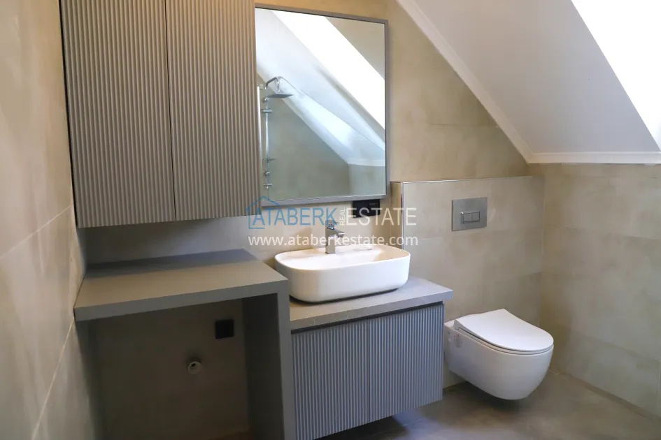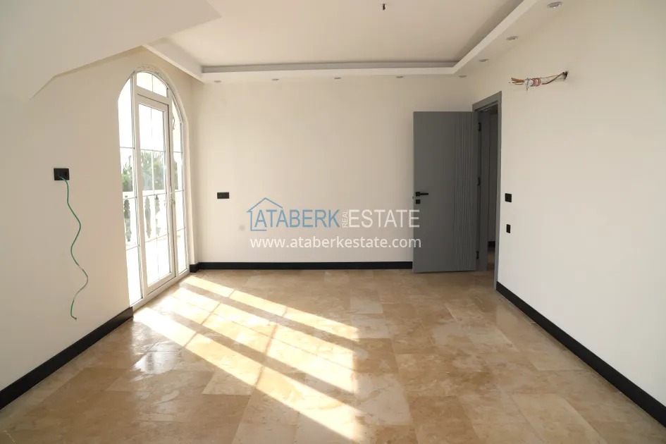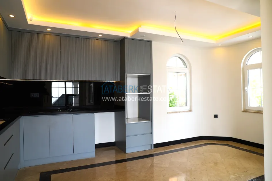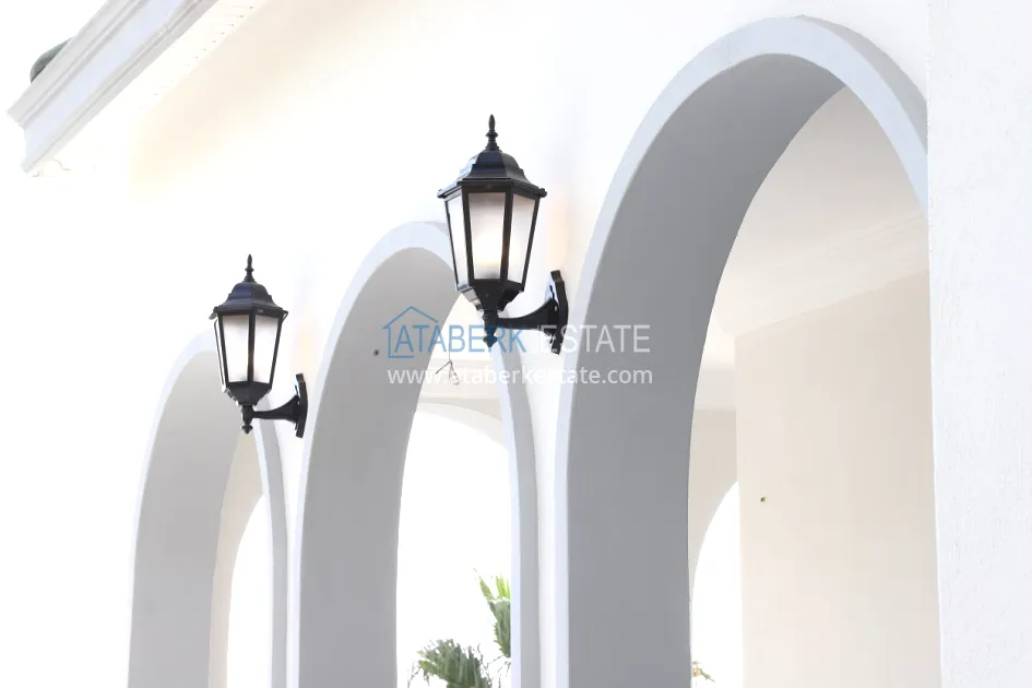 The project is designed with exclusive architectural understanding. The roof is covered with soft tiles, panoramic windows with double glazing and automatic roller shutters, high-quality entrance iron doors and wooden interior doors. The ceiling and walls are made of plasterboard with spotlights, the floors are lined with marble and porcelain tiles. Installed electrical outlets with output for a TV antenna and air conditioning. Built-in kitchen, fully equipped bathrooms.
