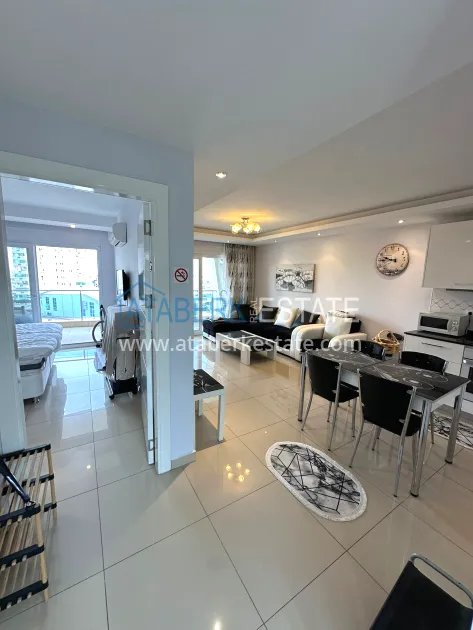The 1+1 layout apartment is located on the 2nd floor. This square houses: a living room combined with an open-plan kitchen, a bedroom, a bathroom and a balcony. It is sold in the form in which it is shown in the photo.