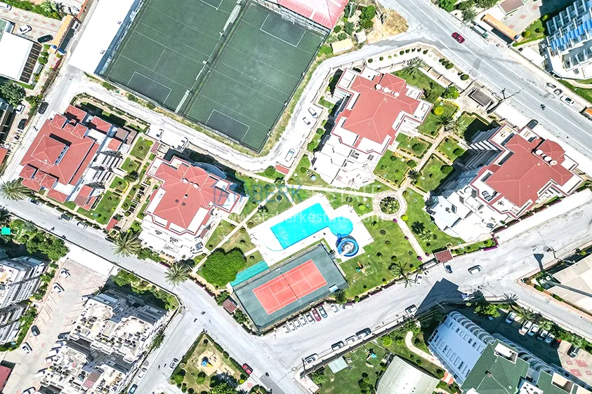 The complex with a closed and protected area is located in the very center of the district - one of the most populated and popular in Alanya. The infrastructure of the residence is self-sufficient, which allows you to enjoy your vacation without leaving the territory. The coast is about 1 km away. Within walking distance, there are numerous shops, sports and leisure facilities, many cafes and restaurants for every taste and budget, and there are excellent parks with swings for families and children. A farmers market is 100 metres from the residence on Saturdays. A bus stop is 10 metres away.