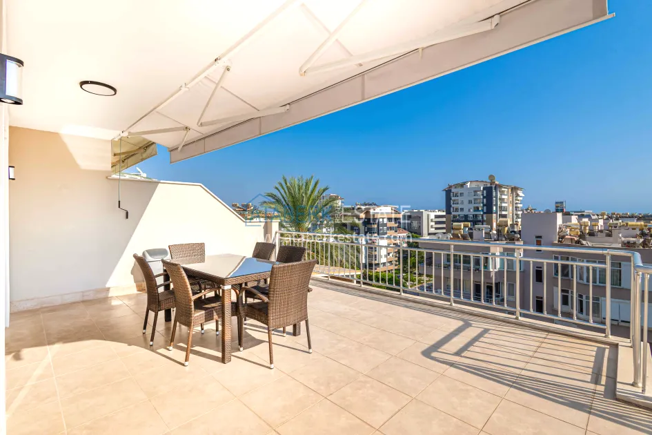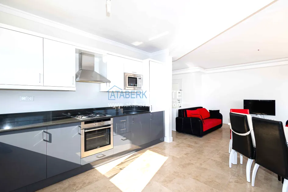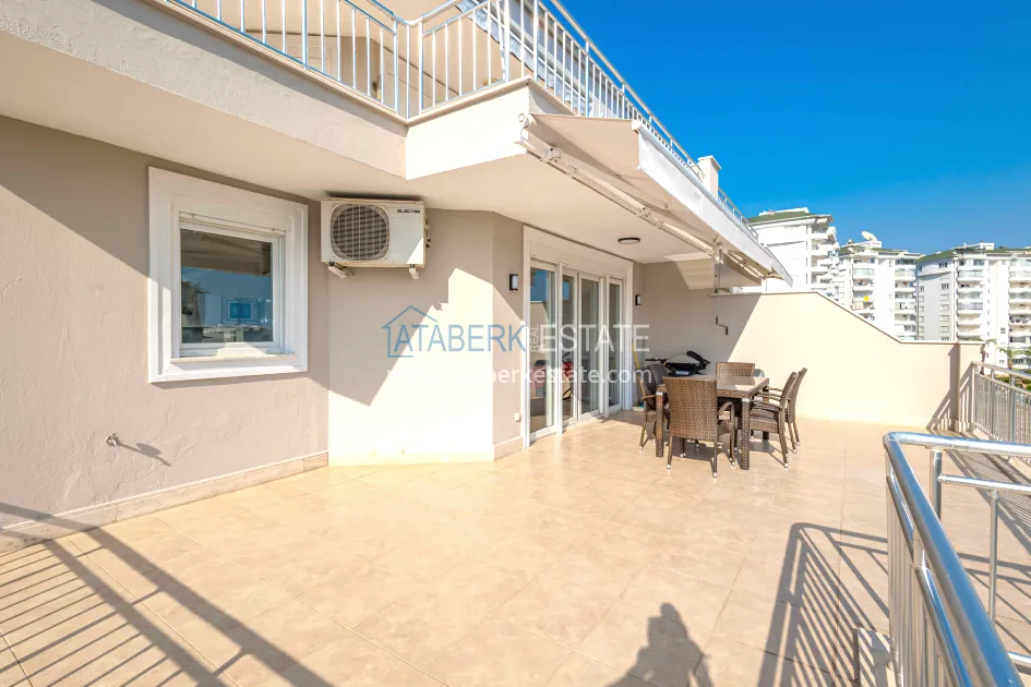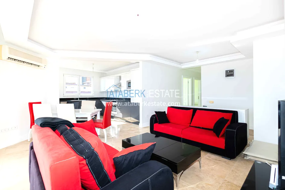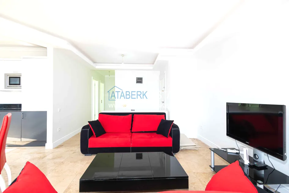 The proposed three-room apartment is located on the Turkish 3rd floor (actually the 4th). The total area is 110 m2, including a spacious living room with an open-plan kitchen area, two bedrooms, two bathrooms and a large terrace that replaces the standard balcony. The space is well zoned, and access to the outdoor terrace makes the apartment particularly attractive both for living and relaxing. The photo shows it with furniture, but the price includes only household appliances and air conditioners - the apartment is sold unfurnished.