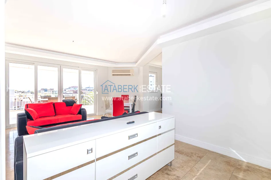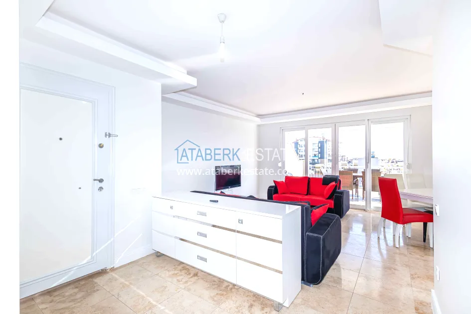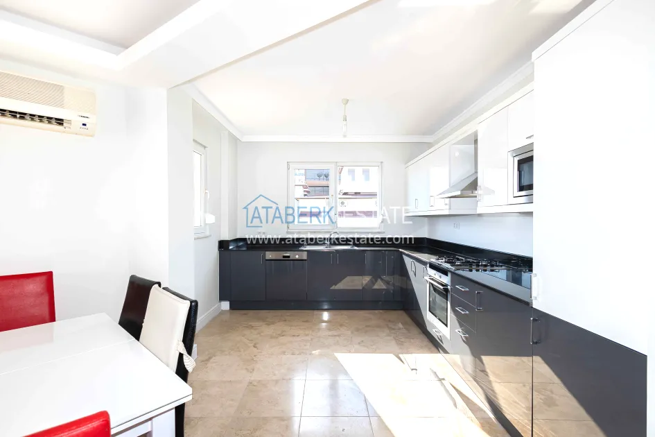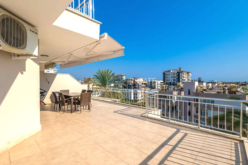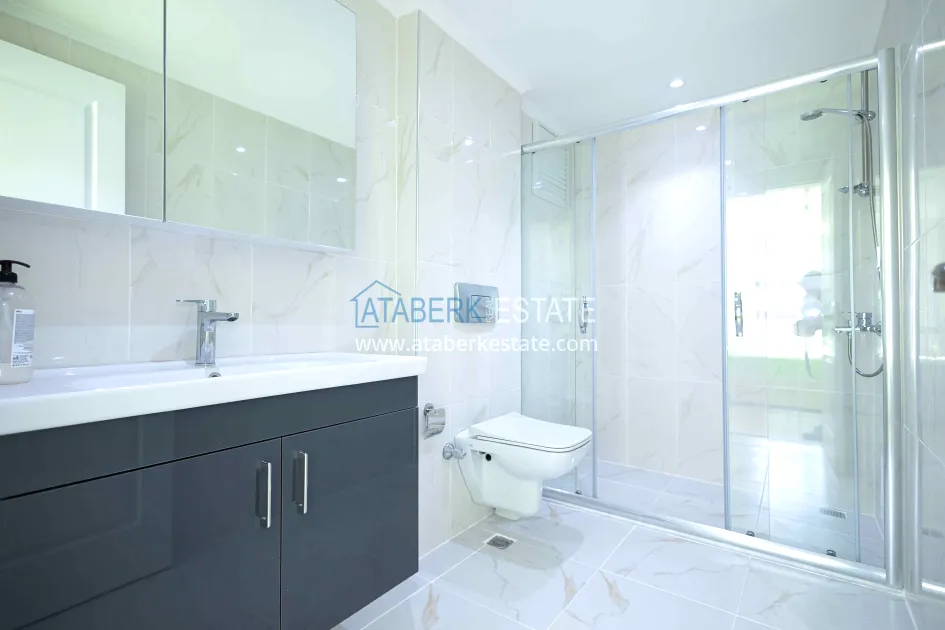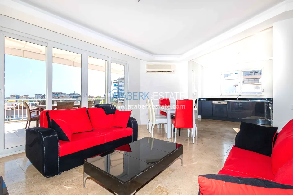 The proposed three-room apartment is located on the Turkish 3rd floor (actually the 4th). The total area is 110 m2, including a spacious living room with an open-plan kitchen area, two bedrooms, two bathrooms and a large terrace that replaces the standard balcony. The space is well zoned, and access to the outdoor terrace makes the apartment particularly attractive both for living and relaxing. The photo shows it with furniture, but the price includes only household appliances and air conditioners - the apartment is sold unfurnished.