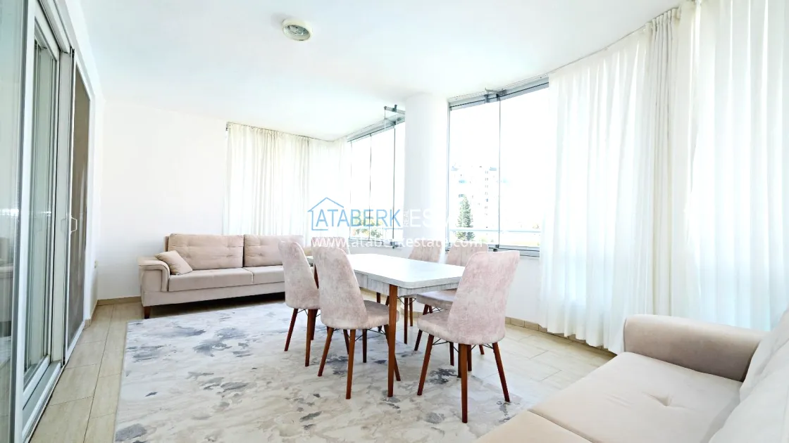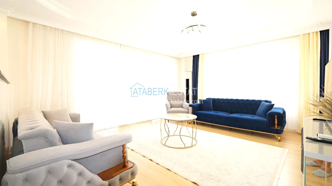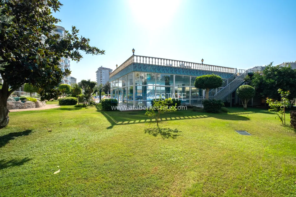 A 120 m² 2+1 apartment is located on the ground floor. Its layout includes a living room with an open kitchen, two bedrooms, two bathrooms and two glazed balconies. It is offered with furniture and household appliances. Space, light and comfort are thought out in every detail, which will allow the new owner to move in right away and enjoy life by the sea.