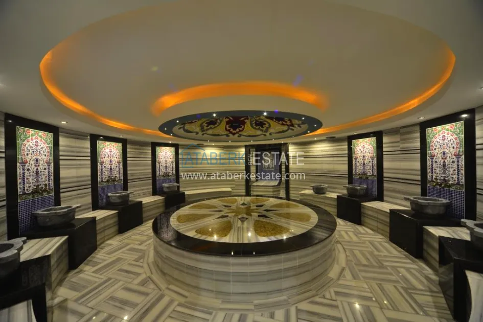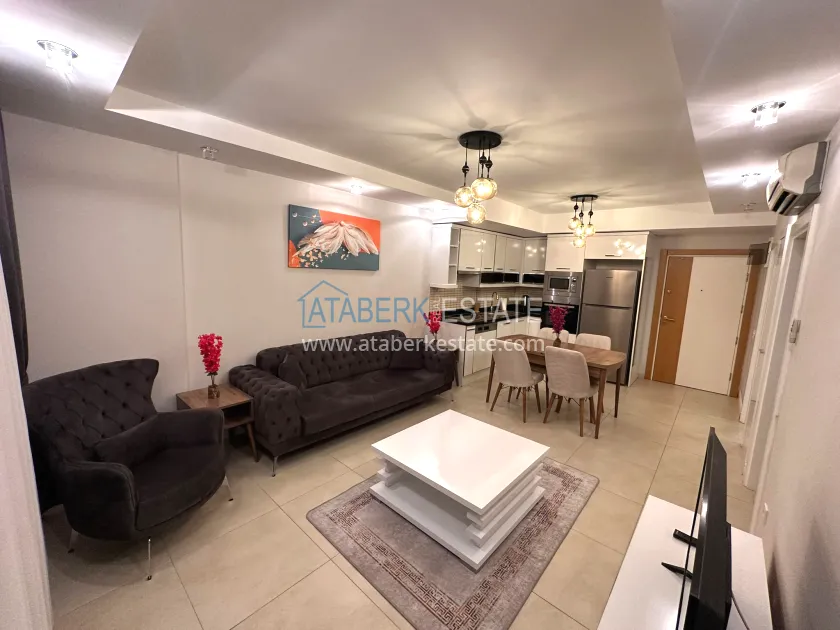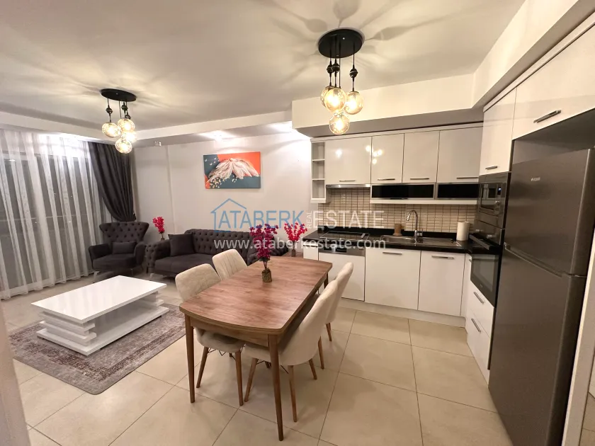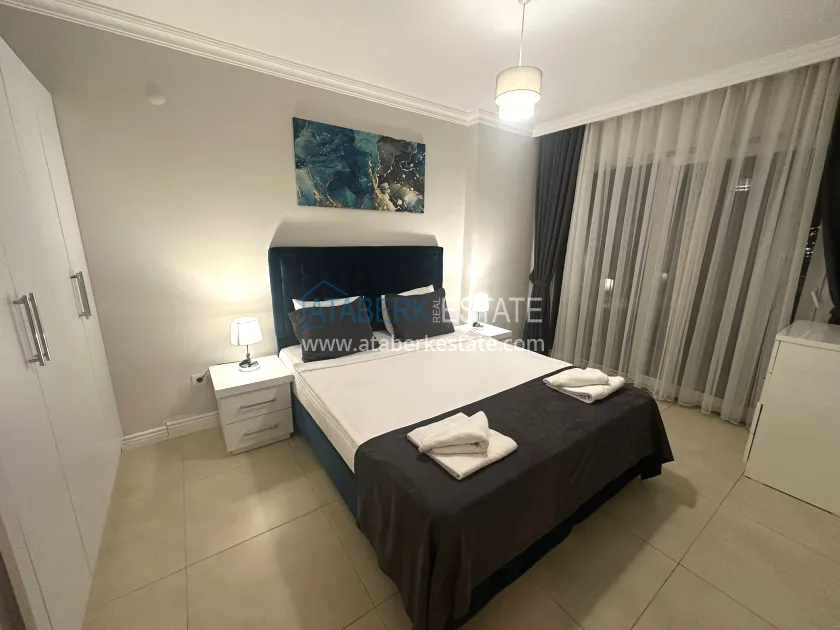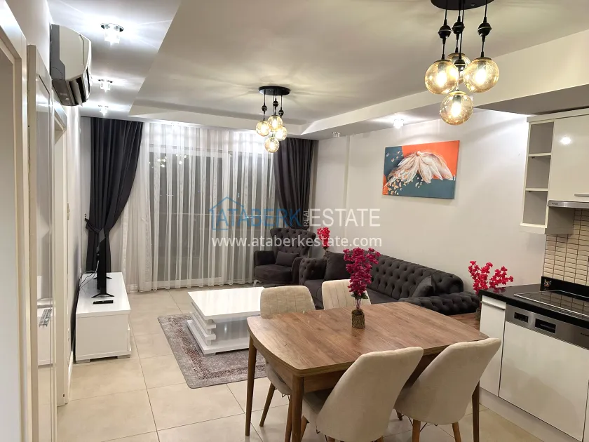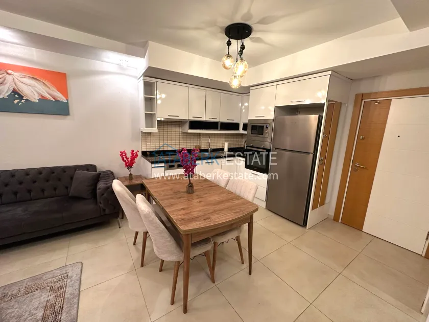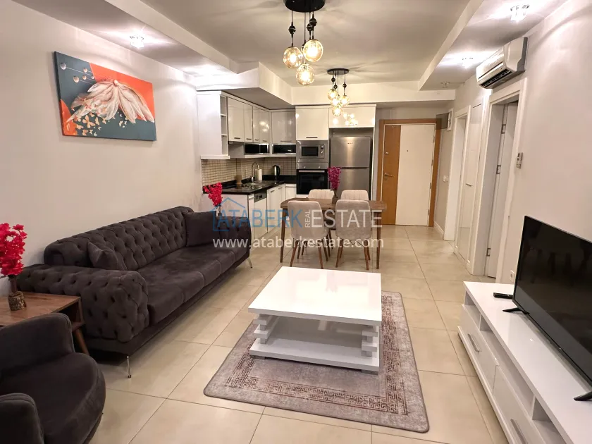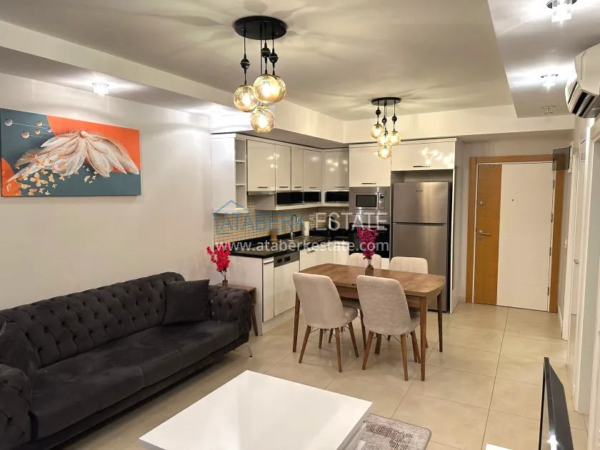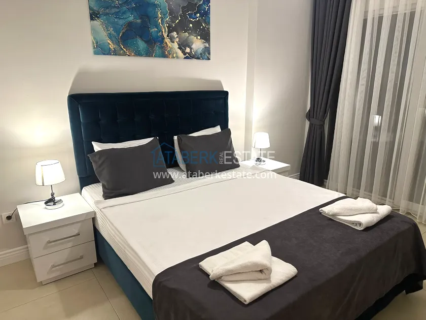 The 65 m² 1+1 apartment is located on the 8th floor and is oriented to the south, so the rooms are always bright and warm. The windows offer stunning panoramic views of the Mediterranean Sea, the Alanya Fortress and the pool area. The apartments are sold furnished, which will allow you to move in without hassle. The layout includes a living room with an open-plan kitchen, a bedroom, a bathroom and a cozy balcony, from which it is especially beautiful to watch the evening lights of the city.