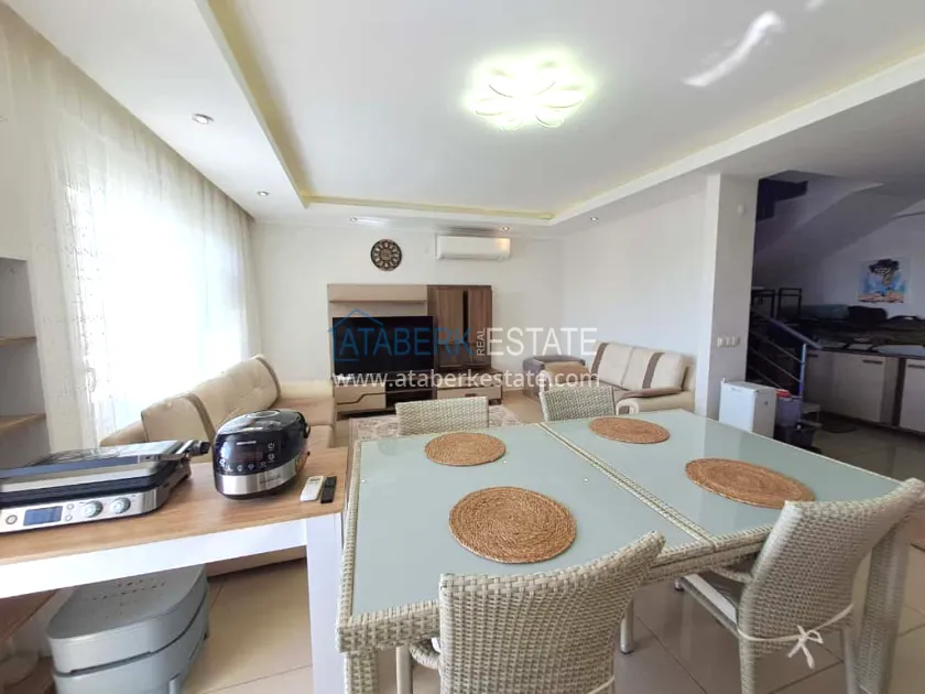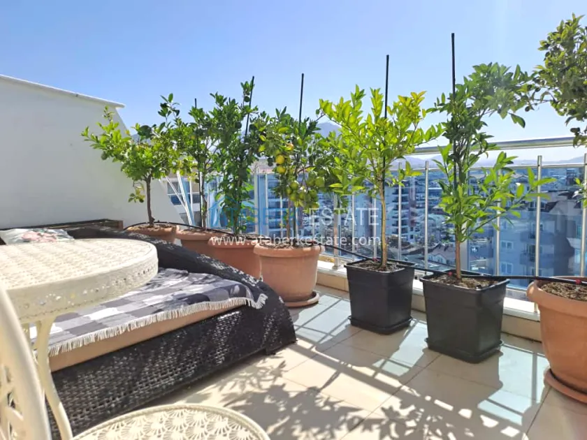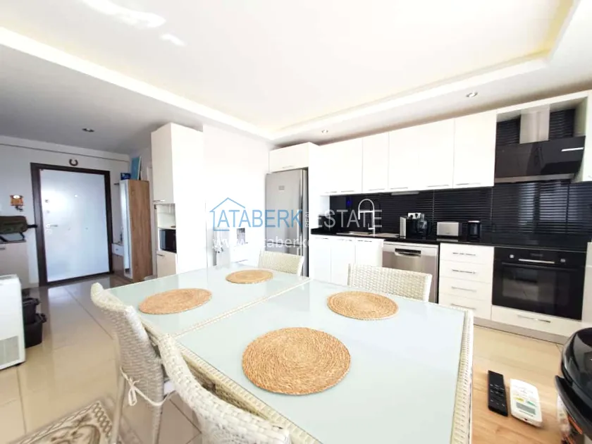 The two-level apartment with an area of 160 m² of 3+1 layout includes a living room with an open-plan kitchen, three bedrooms, two bathrooms and three balconies. The windows offer beautiful views of the sea, mountains and the surrounding city. The apartments are sold with Bosch furniture and household appliances, which are under warranty, as well as with Daikin air conditioners (1 year of operation). The aidat was paid until May 2026 — a nice bonus for the future owner.