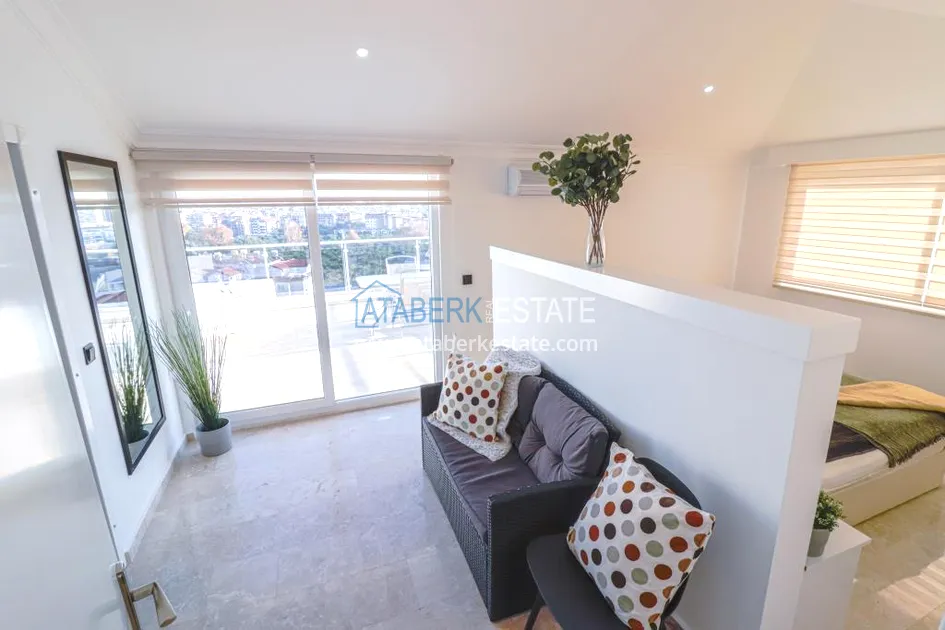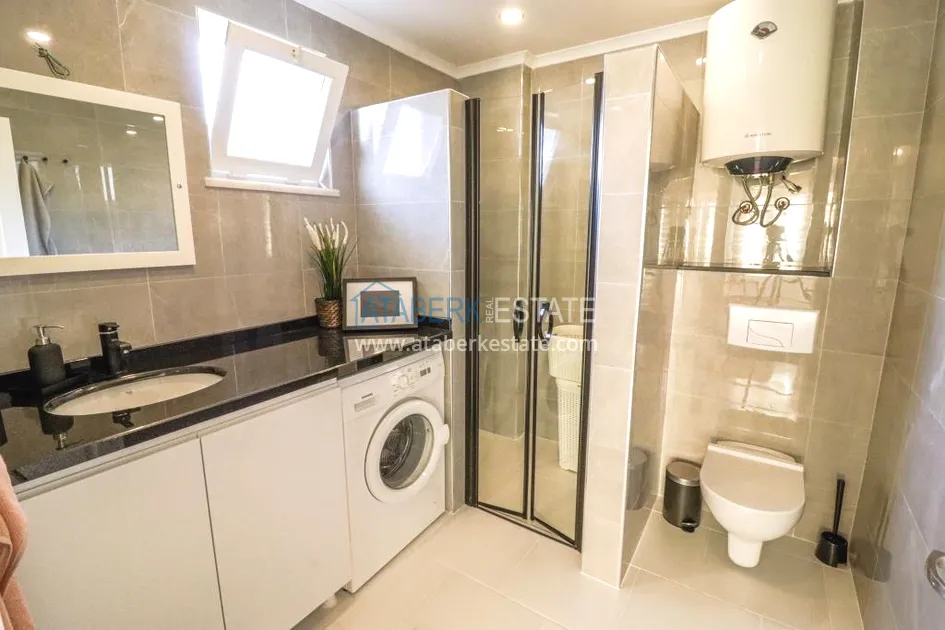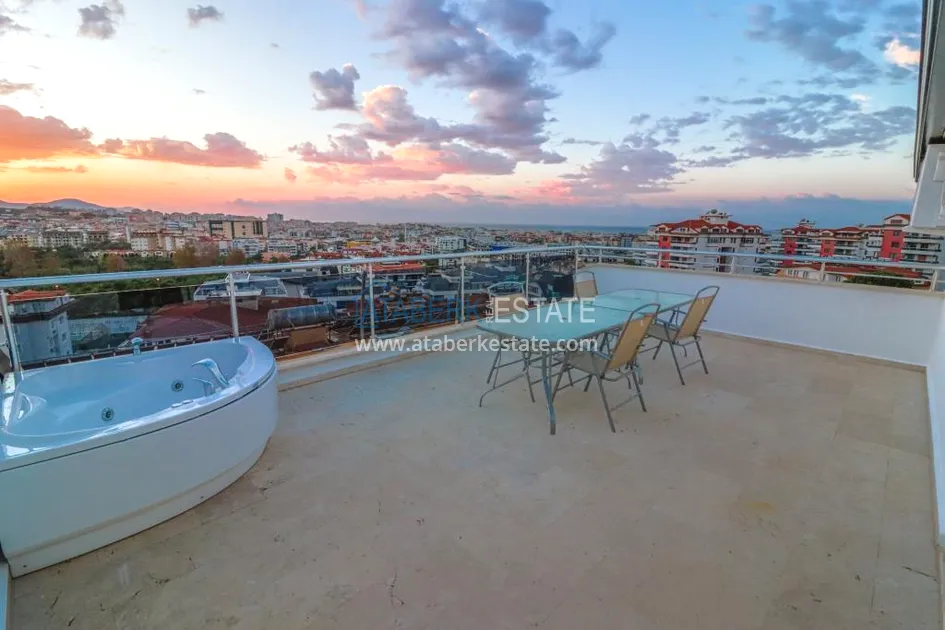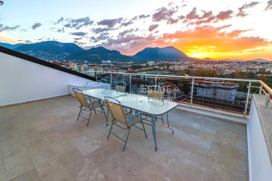 We bring to your attention a fully equipped two-level apartment with a jacuzzi on the terrace, in a modern complex in a residential area of Alanya.