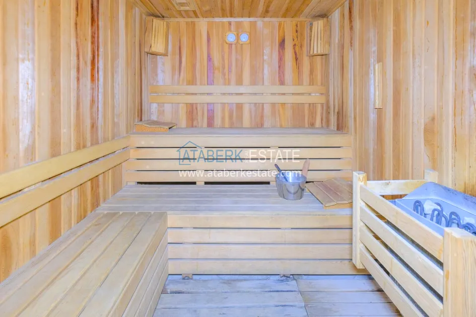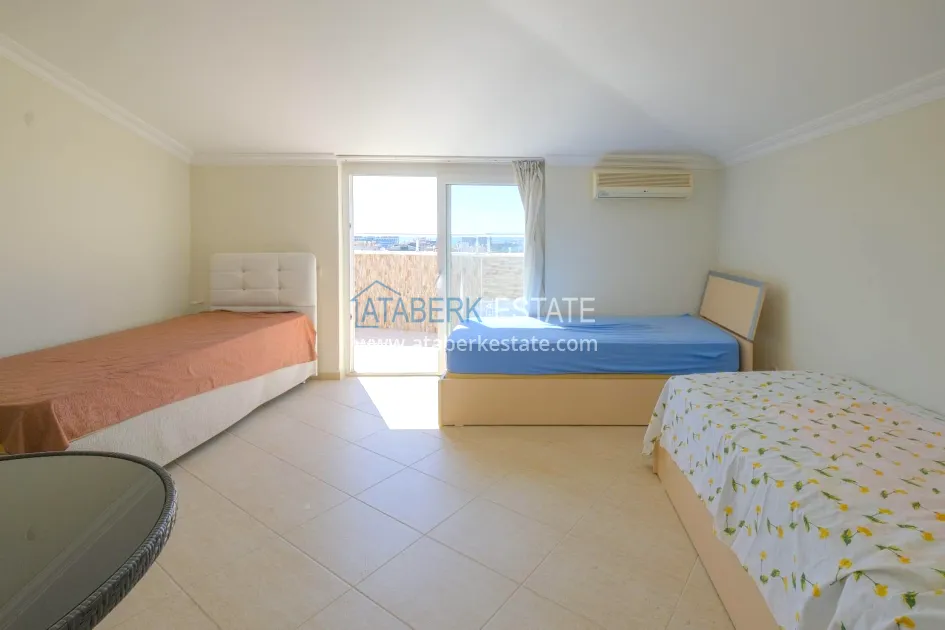 The residential complex consists of one house with a closed landscaped area. Everything for a comfortable life has been created here: a green courtyard, security and a quiet atmosphere. Aydat is 1,250 lira per month. The residence is located just 800 meters from the beach, right behind the largest shopping center, Alanya, which makes the location particularly attractive for permanent residence and rent.