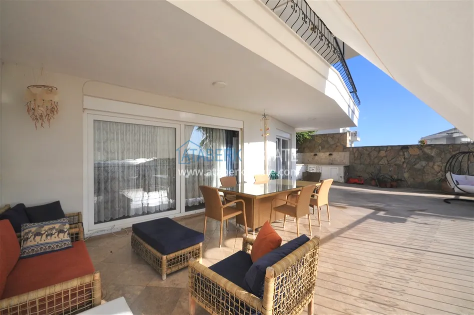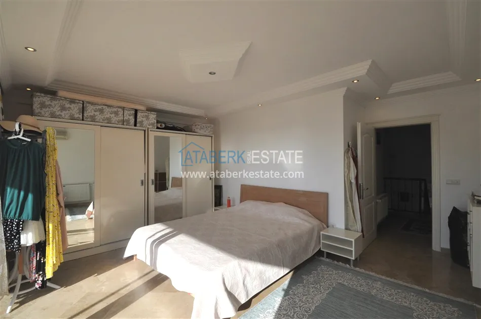 A modern two-level cottage for two owners with a private area and a shared pool, located in a quiet residential area of Alanya - Cikcilli. The location of the house will allow you to enjoy both views of the mountains and the sea, clean air and silence. The Mediterranean coast is 1.5 km away. The villa has a 3 + 1 layout, the total area is 240 m2. On this area are located: a salon with an American-style kitchen, three bedrooms, two bathrooms, two spacious balconies. The house is being sold as shown in the photo.