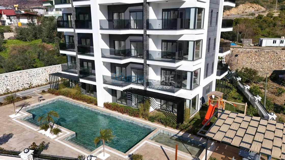 Location: sea — 2.7 km; market — 500 m; school — 300 m; bus station — 500 m; Alanya center — 25 km.